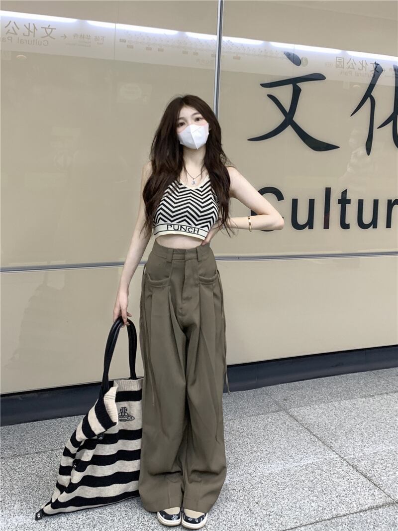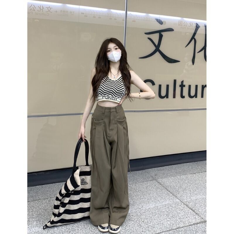 Waist Straight Pocket Pants Women's Summer 2022 Loose Cargo Pants Versatile Show Thin Mopping Wide Leg Pants サマー 夏物 ワイドレッグ ワイドパンツ 0921979904737885
