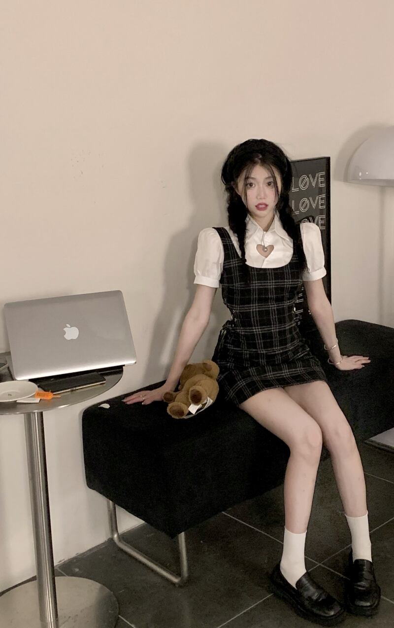 Sweet Spice Suit Women's Summer 2022 Love Hollow Shirt Lace Up Plaid Dress Two Piece Set レース 大人ガーリー スウィート キュート カジュアル サマー 夏物 レースアップ 0921940492847388
