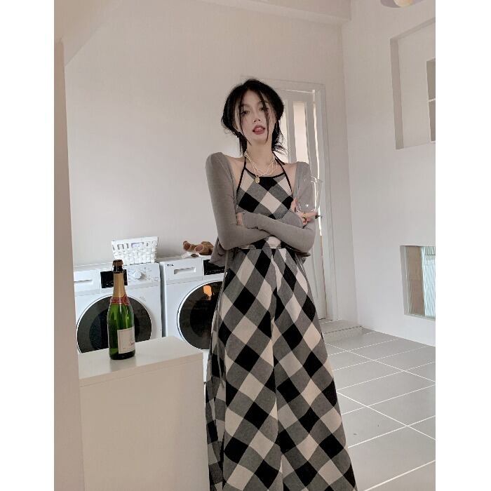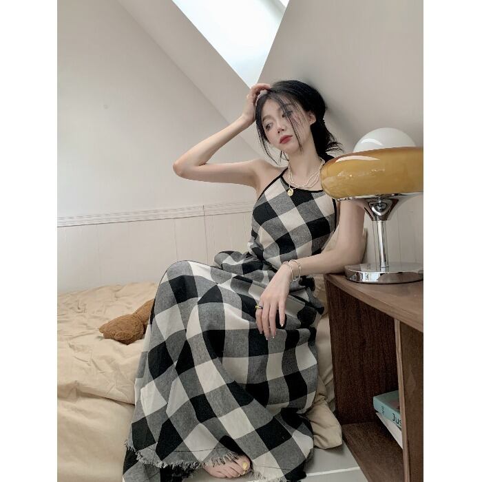 Pure desire style halter dress women's summer 2022 new waist and thin design feeling rough edge long skirt trendy ロング サマー 夏物 スカート 092198915422243