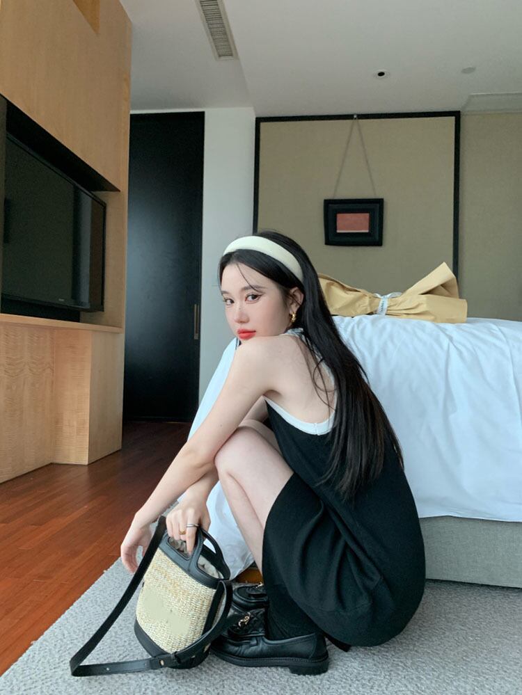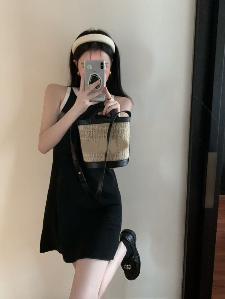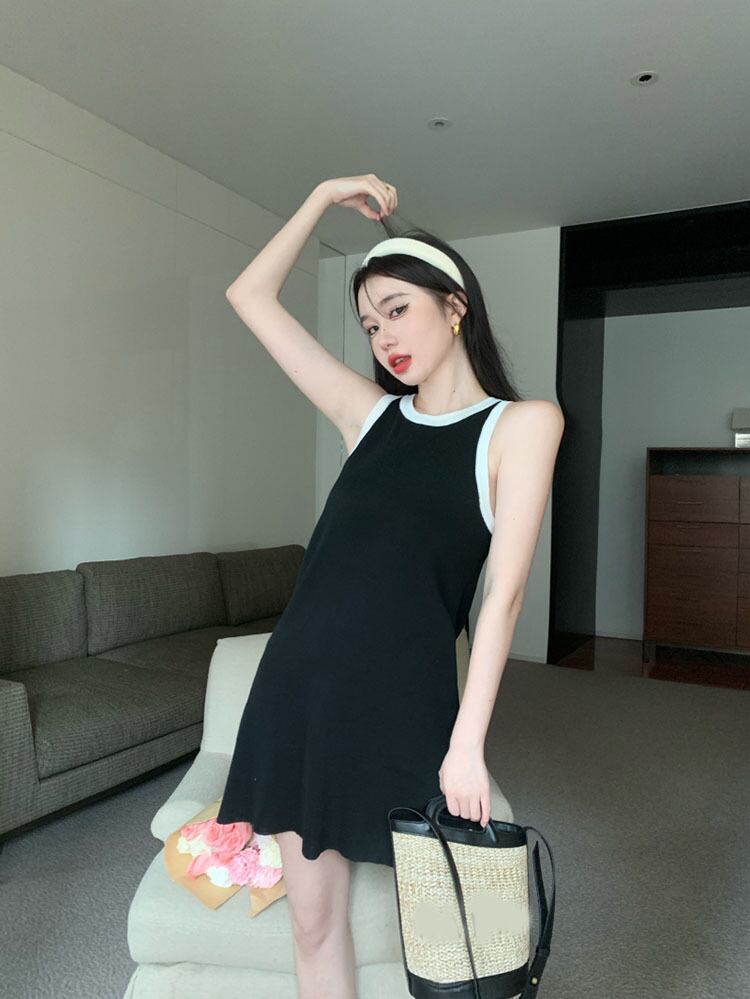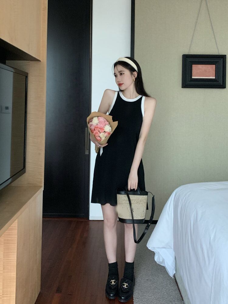 Xiaoxiangfeng color matching vest dress women's summer 2022 new design sense chic waist and thin A-line skirt サマー 夏物 スカート Aライン 0921975284070998