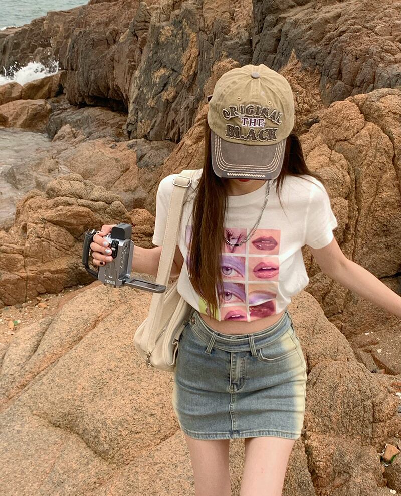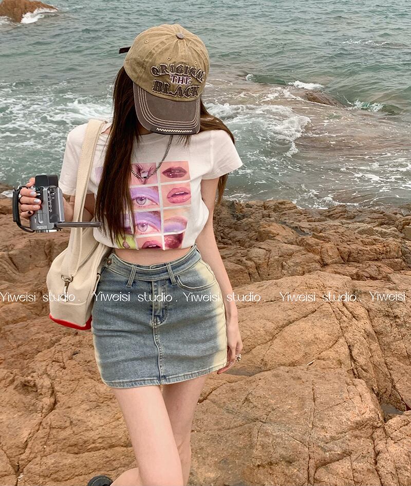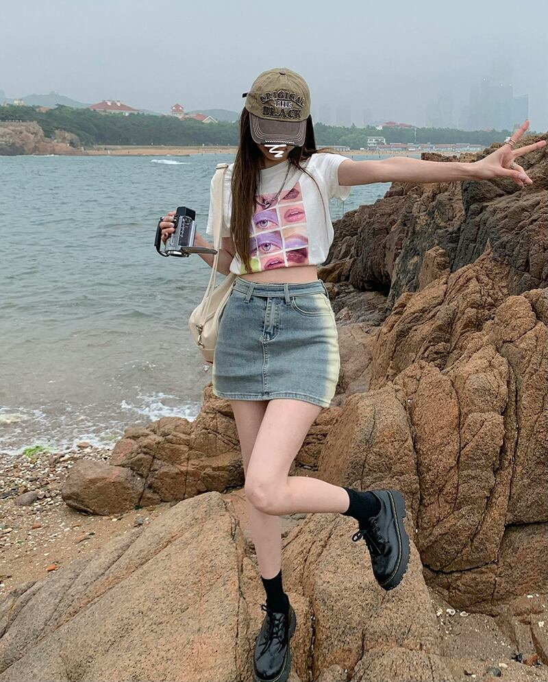 sense contrast color denim skirt women's summer 2022 new net red small man high waist and thin bag hip skirt ハイウェスト レッド サマー 夏物 スカート 0921963175135115