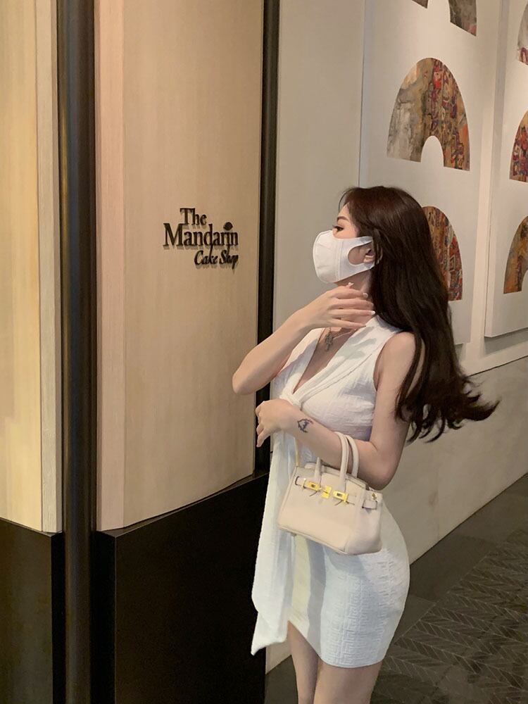 Sexy V-neck strapless bow tie sleeveless white dress women's summer 2022 new waist bag hip skirt ホワイト リボン サマー 夏物 ノースリーブ スカート Vネック 0921992345834004