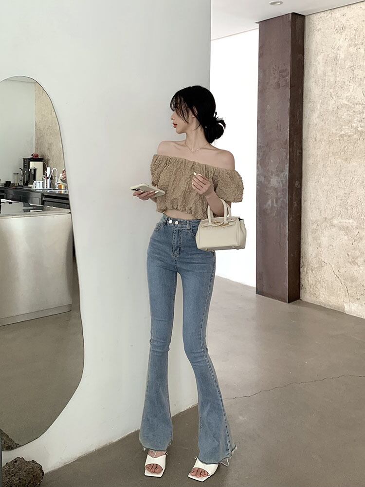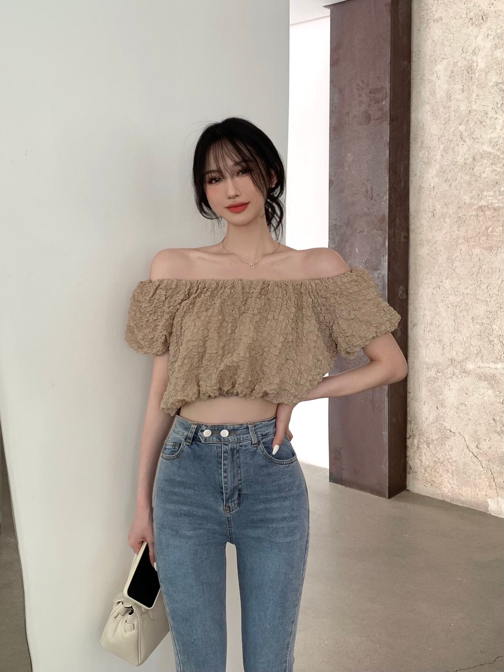 French temperament one-shoulder pleated puff sleeve chiffon shirt women's summer 2022 new chic short top trend ショート シフォン プリーツ サマー 夏物 0921951151830168