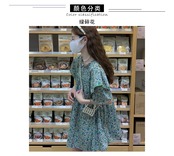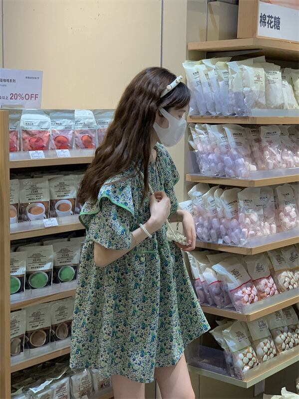 Small fresh green flying sleeve floral dress female summer 2022 new sweet loose A-line skirt 大人ガーリー スウィート キュート カジュアル サマー 夏物 花柄 スカート Aライン グリーン 092199269758064