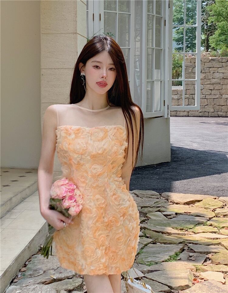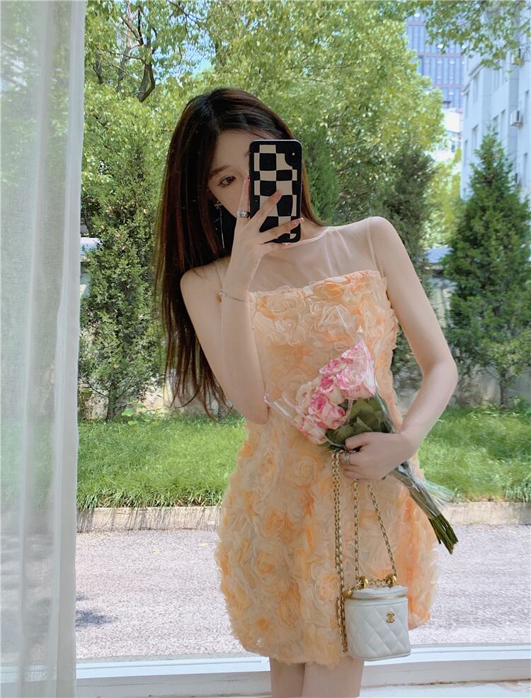Pure desire wind three-dimensional flower sleeveless dress women's summer 2022 new design sense waist thin A-line skirt サマー 夏物 ノースリーブ スカート Aライン フラワーデザイン 0921921533269899