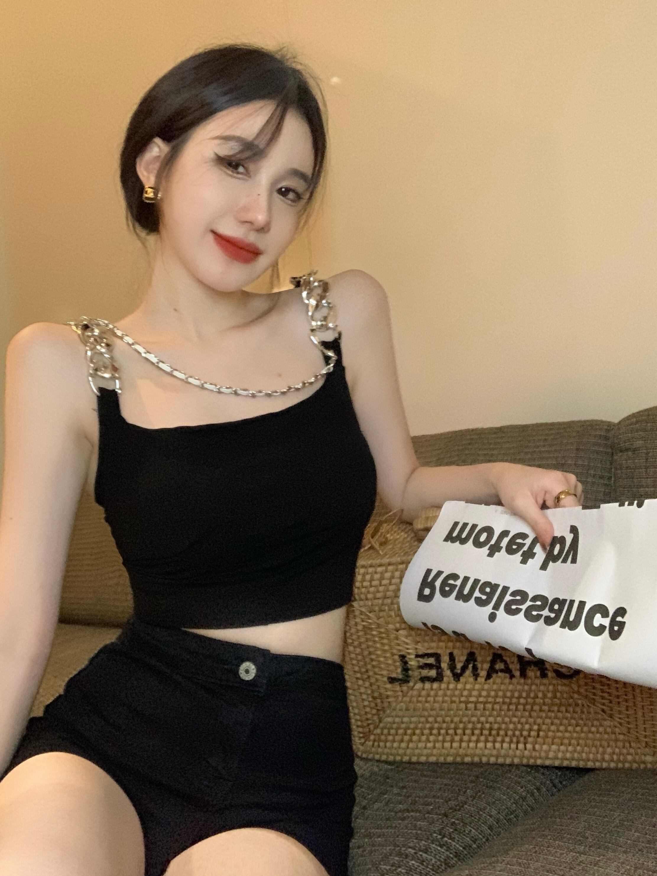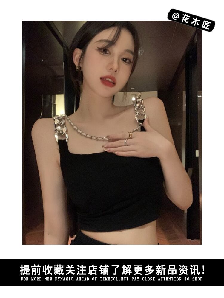 Hot heavy industry chain camisole women's inner wear summer 2022 new slim black short top wear trendy outside ショート ブラック サマー 夏物 スリム チェーン 0921927789680391