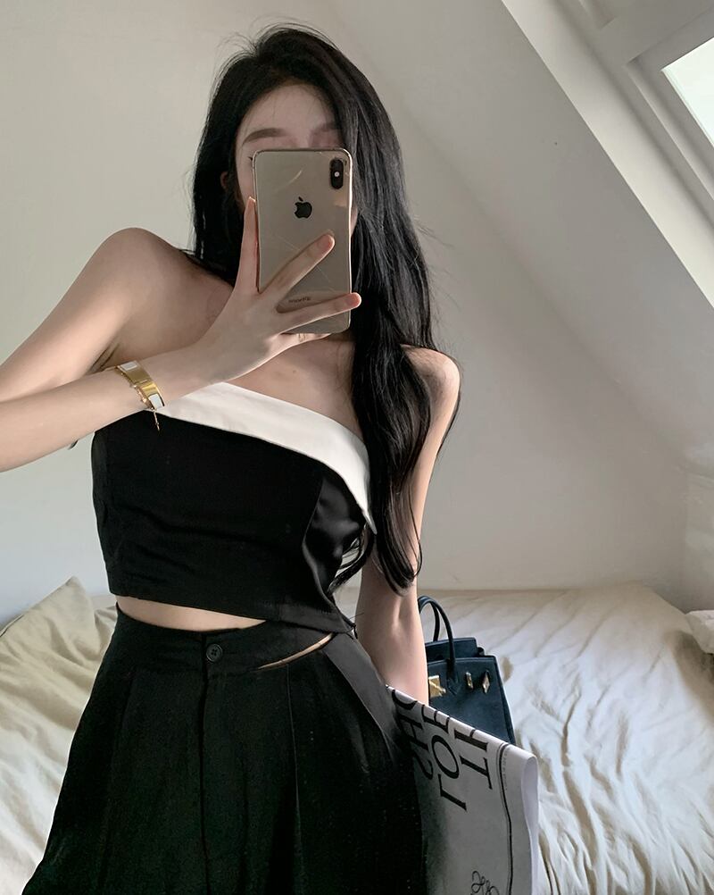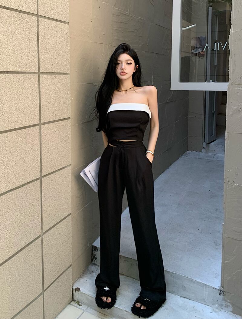 Wide leg pants suit female summer 2022 new color matching tube top vest casual pants salt series royal sister fried street two-piece set カジュアル ストリート サマー 夏物 ワイドレッグ ワイドパンツ 0921925208198583