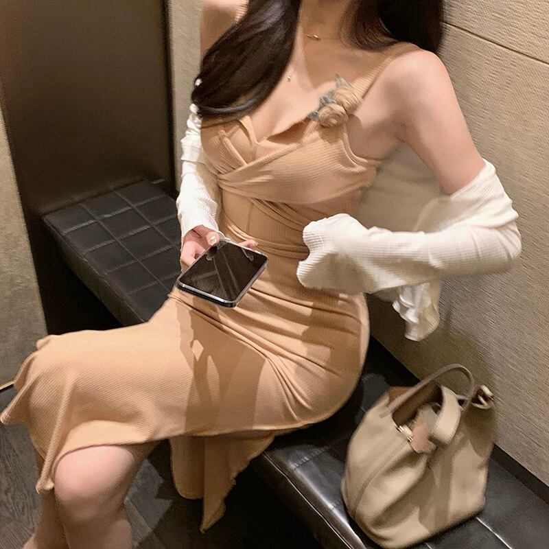 Sexy suspender dress women's high-end summer 2022 new cross waist mid-length slit bag hip skirt サマー 夏物 スカート 0921934978467180