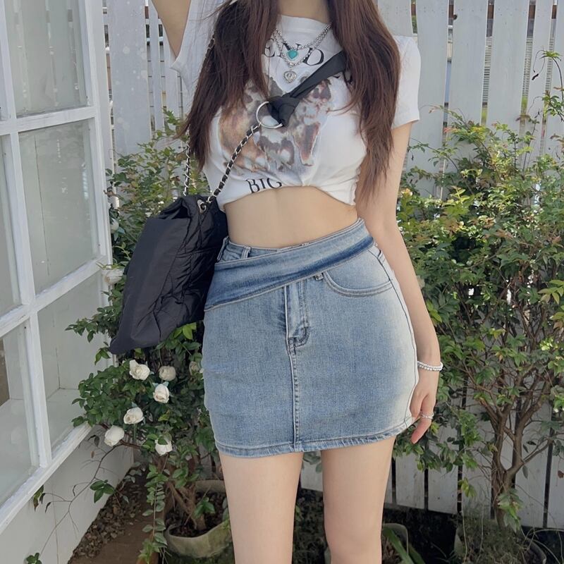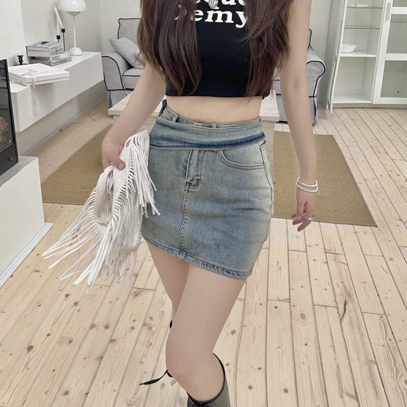 Hot design high waist denim skirt women's summer 2022 new retro small all-match bag hip skirt ハイウェスト レトロ サマー 夏物 スカート 0921984499492970