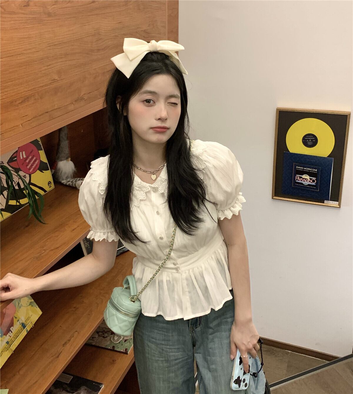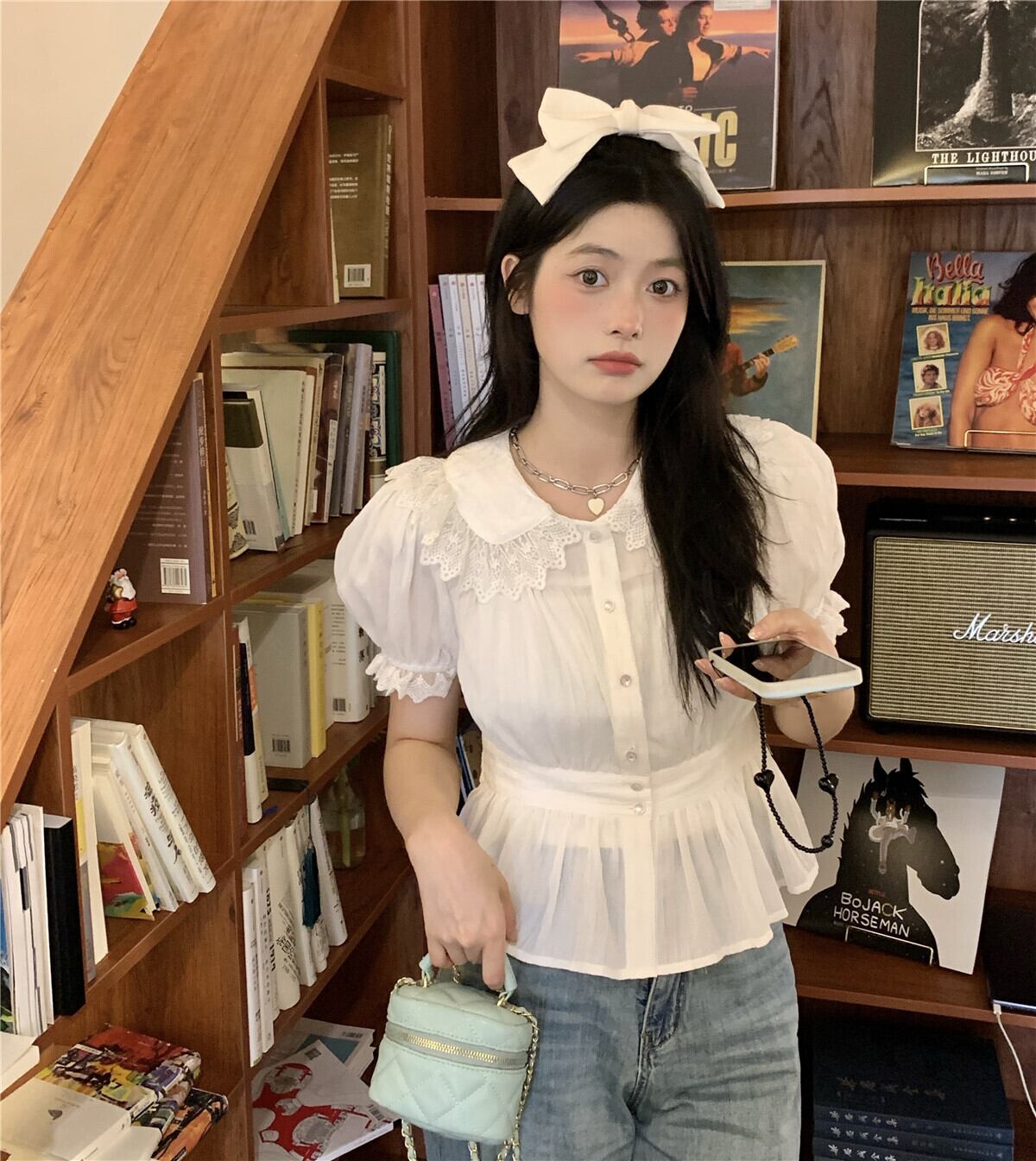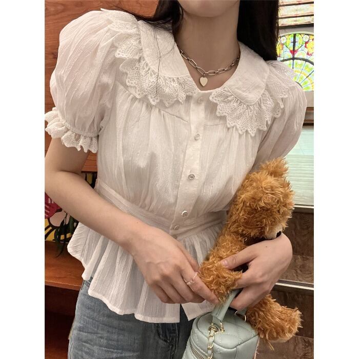 French heavy industry white lace shirt women's summer 2022 new design small sweet doll collar top ホワイト レース 大人ガーリー スウィート キュート カジュアル サマー 夏物 0921986114067685