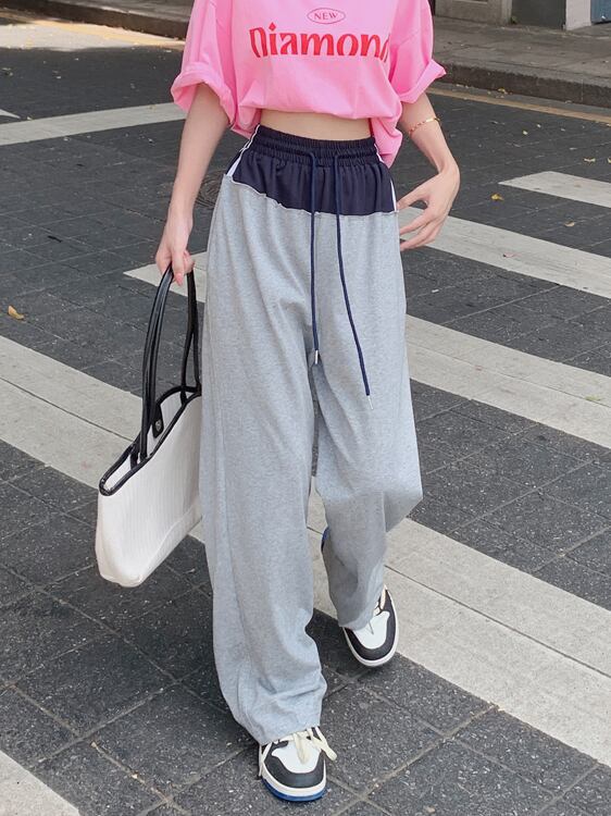 Lazy wind chic color matching drawstring high waist casual pants women's summer 2022 new version all-match loose wide-leg pants ハイウェスト カジュアル サマー 夏物 092199962603432
