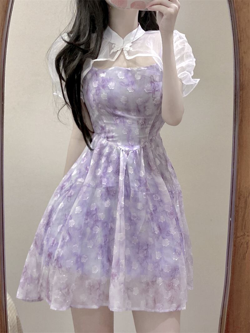 色:パープルHalterドレス,ホワイトブラウズsinglepiece