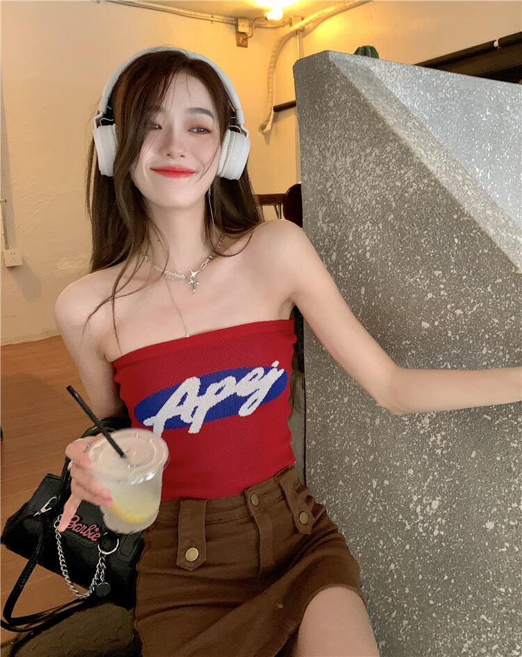 Spice Girls Alphabet Pattern Tube Top Top Women's Summer Outer Wear 2022 Slim Fit Inside Short Wrap Chest Vest Trend ショート サマー 夏物 スリム 0921946882786119