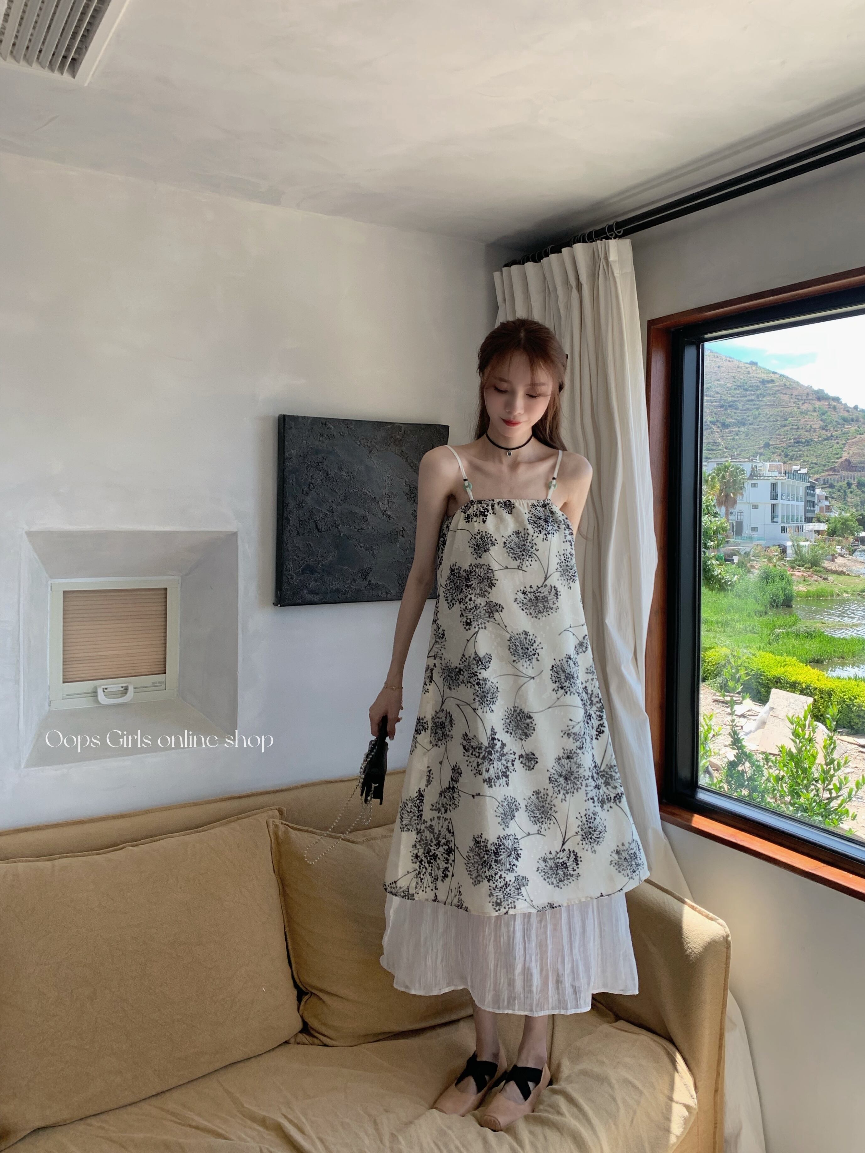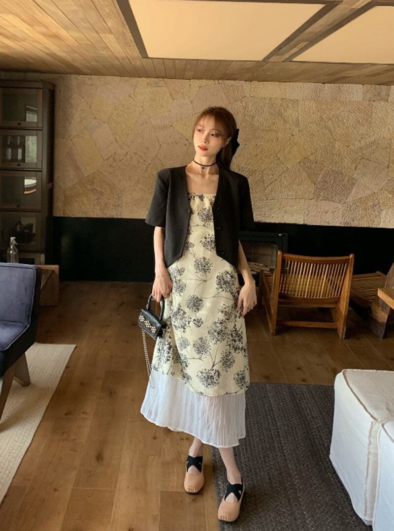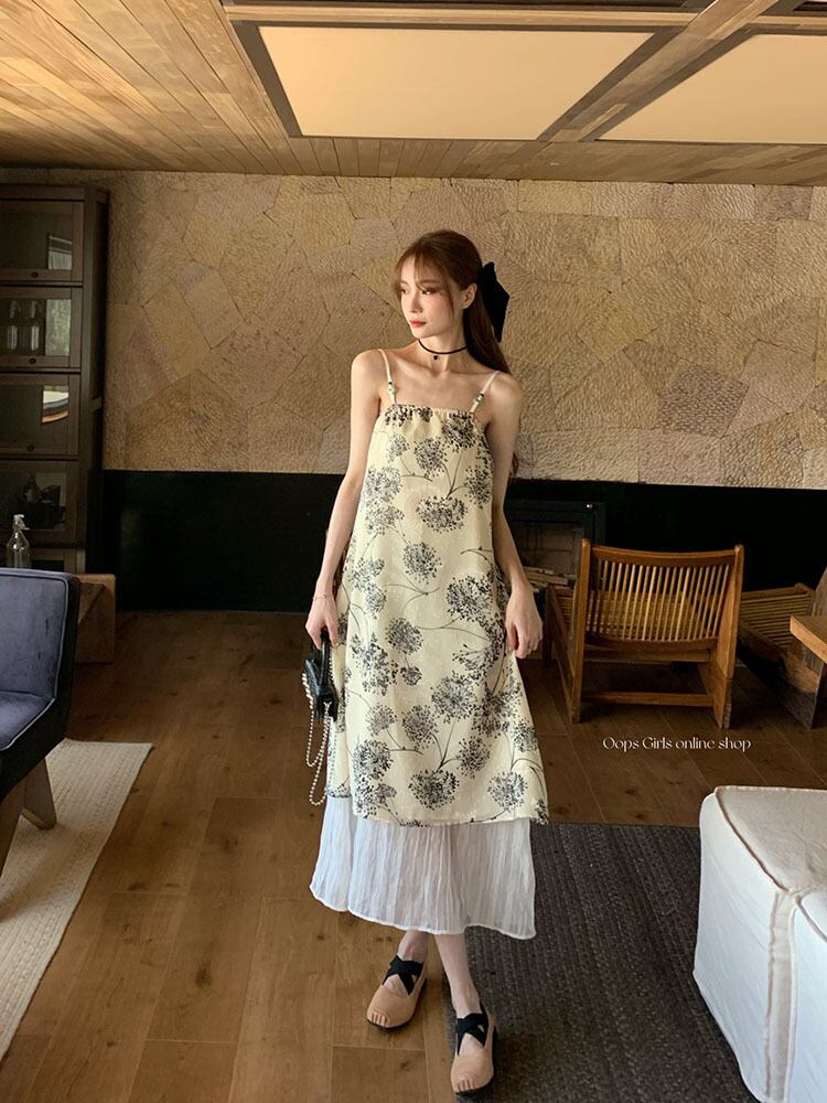 Retro floral suspender dress women's summer 2022 new design, chic, waist and slim mid-length skirt レトロ サマー 夏物 花柄 スカート スリム 0921957796036892