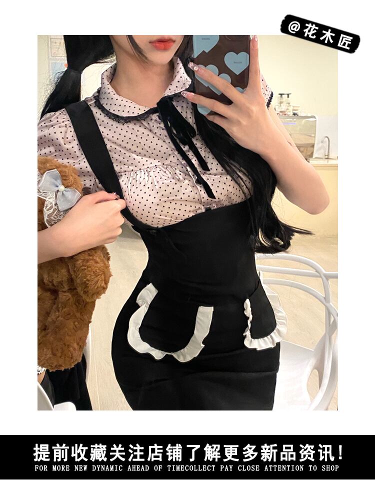 フランスの菌黒ストラップドレス女性2022年夏新しい甘いホットな女の子の小さなウエストバッグヒップスカート ブラック 大人ガーリー スウィート キュート カジュアル サマー 夏物 0921971381927893