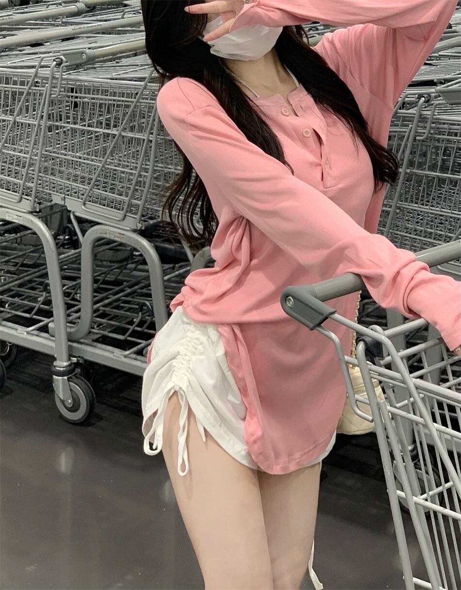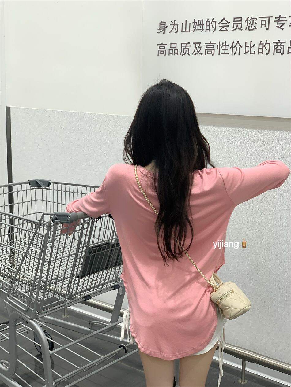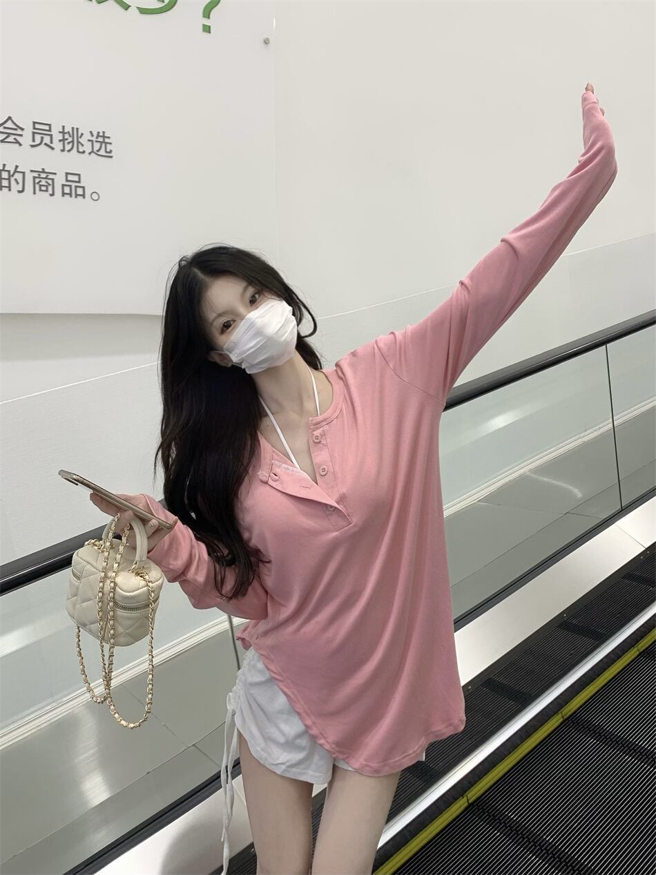 Pure lust pink long-sleeved sunscreen T-shirt women's summer 2022 new design sense all-match casual loose top ins ロング ピンク カジュアル サマー 夏物 Tシャツ 0921953098333923