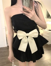 ボウノットブラックチューブトップトップレディースアウターウェアストラップレス夏2022新しいウエストショートラップチェストベストトレンド サマー 夏物 0921946080602022