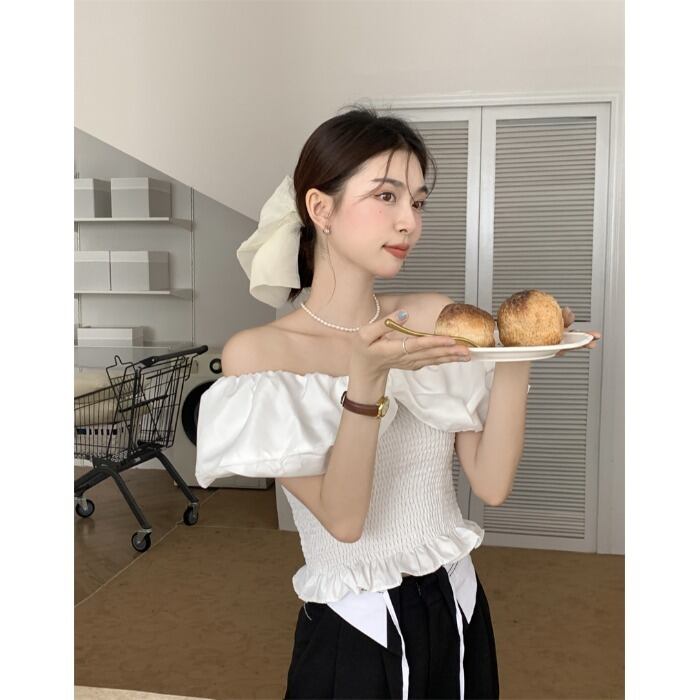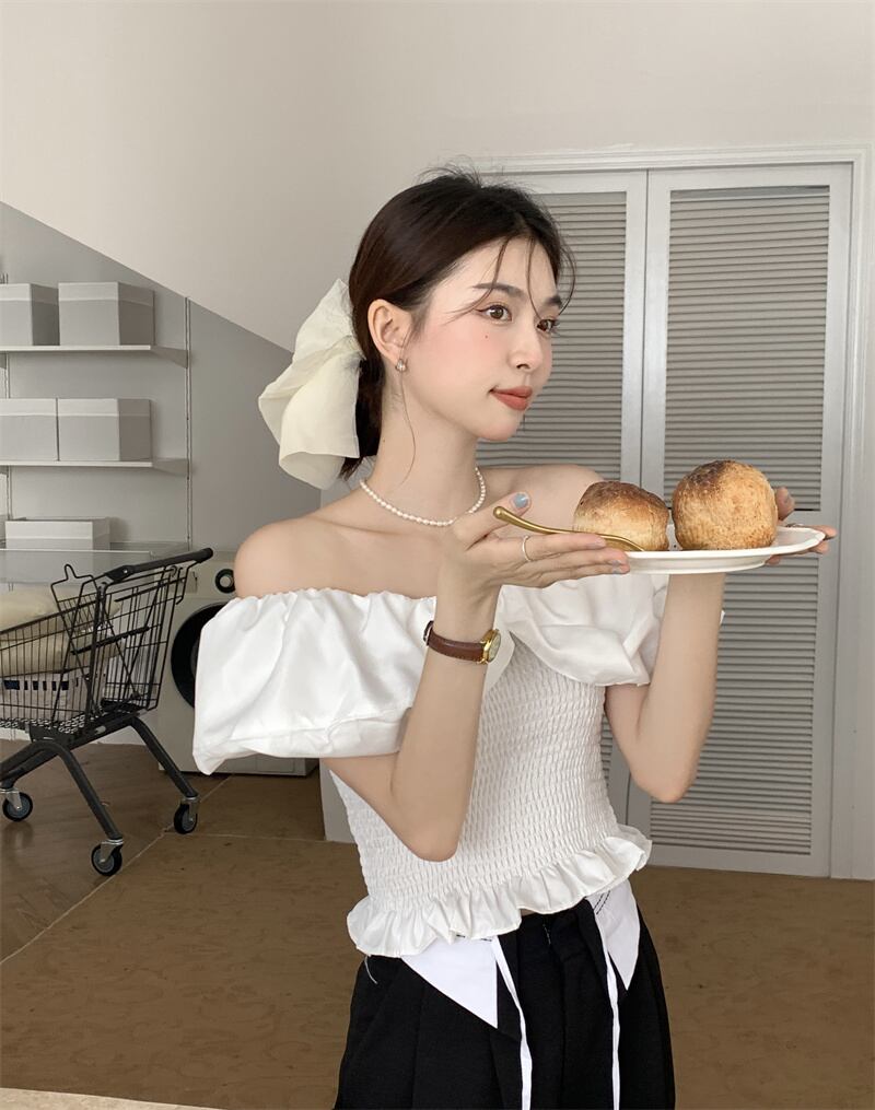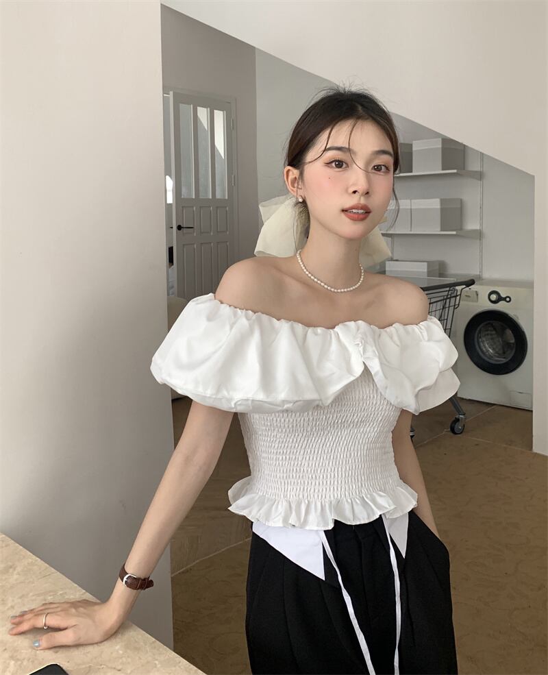 simple ins one-shoulder white shirt women's summer 2022 new temperament ruffled short top trendy ショート ホワイト サマー 夏物 0921930565840256