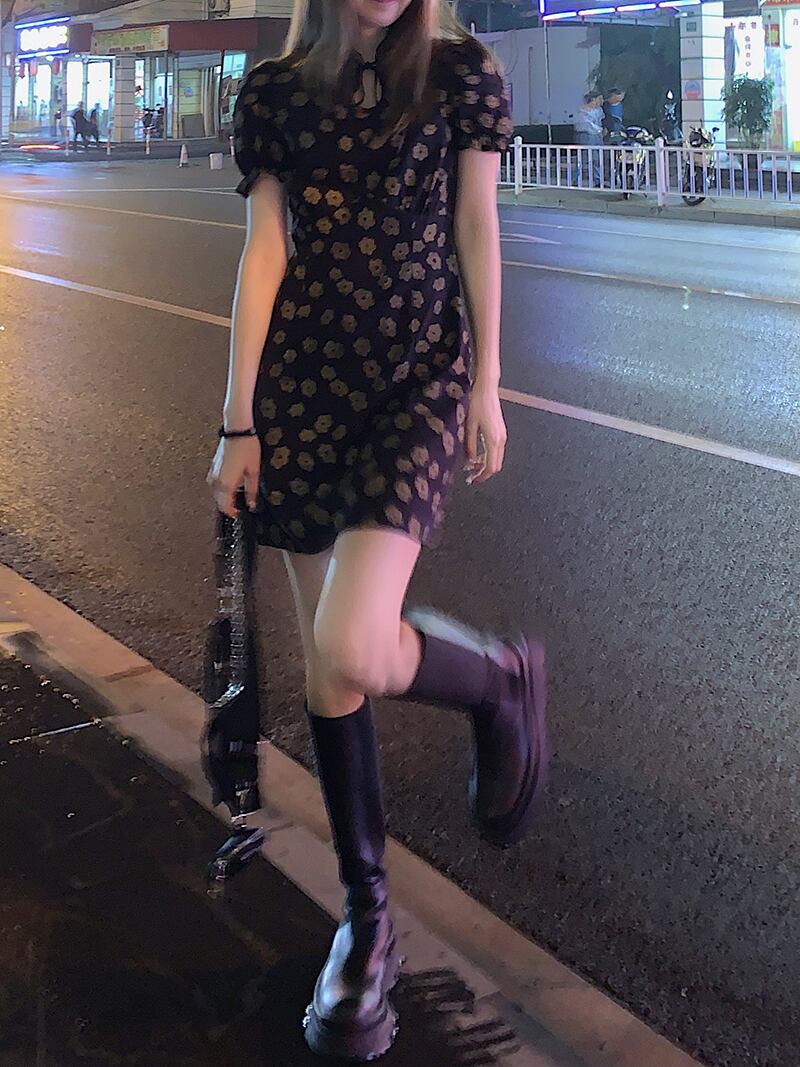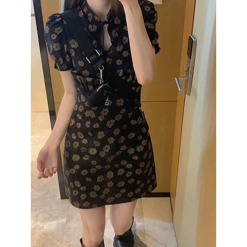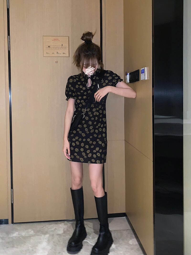 Retro national style improved cheongsam stand-up collar dress women's summer 2022 new waist and thin floral A-line skirt レトロ サマー 夏物 花柄 スカート Aライン 0921981132130998