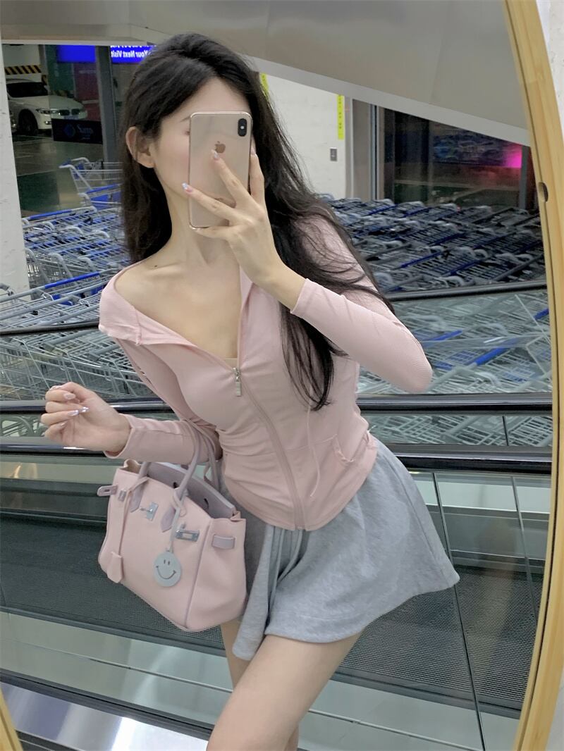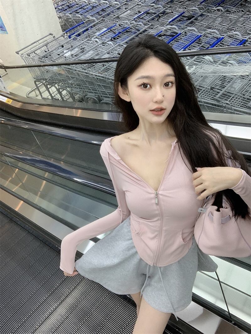 Sun protection shirt women's summer thin section outdoor ice silk UV protection cardigan jacket slim fit and thin short hooded top ショート カーディガン サマー 夏物 スリム シルク 0921972947375566