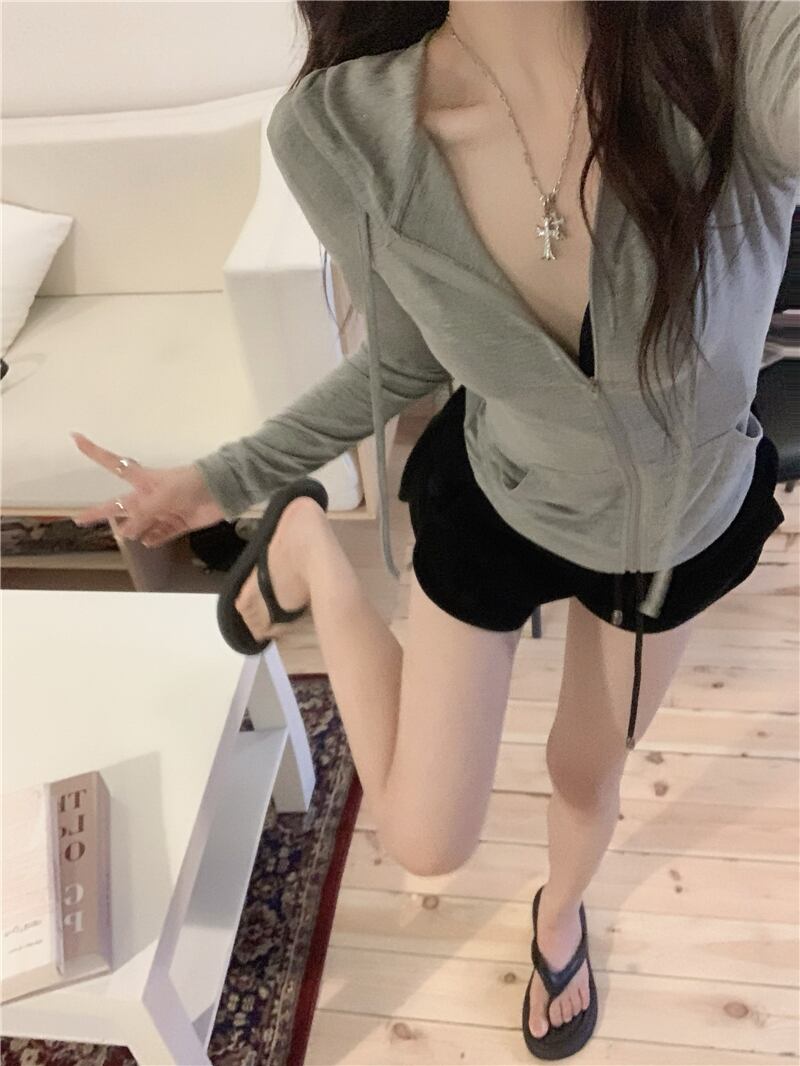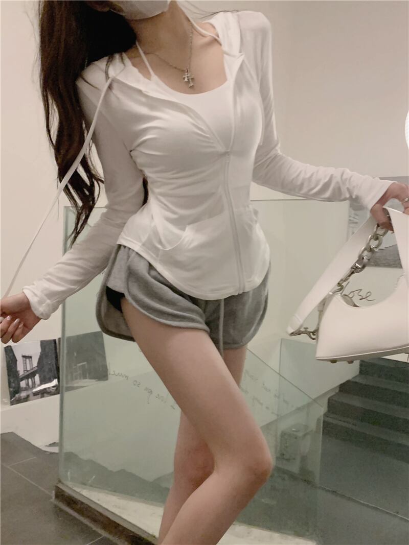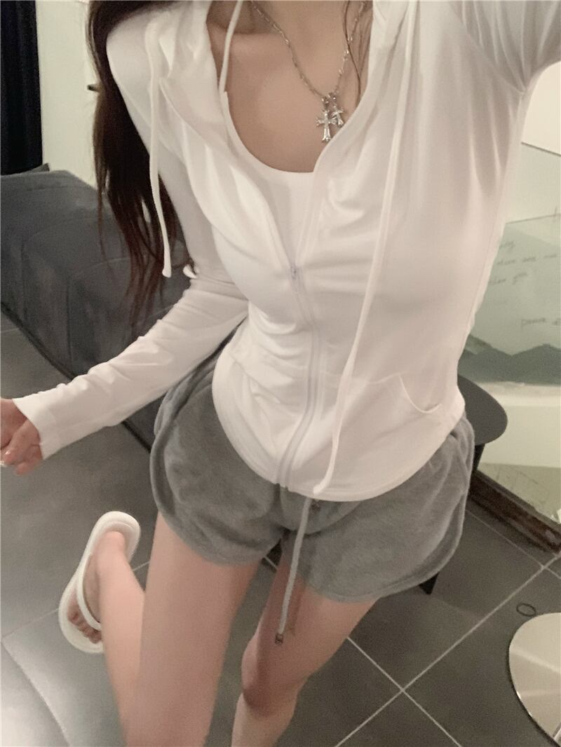 White thin sunscreen shirt long-sleeved hooded jacket women's summer 2022 new chic zipper slim fit all-match top ロング ホワイト サマー 夏物 スリム 0921968826629176