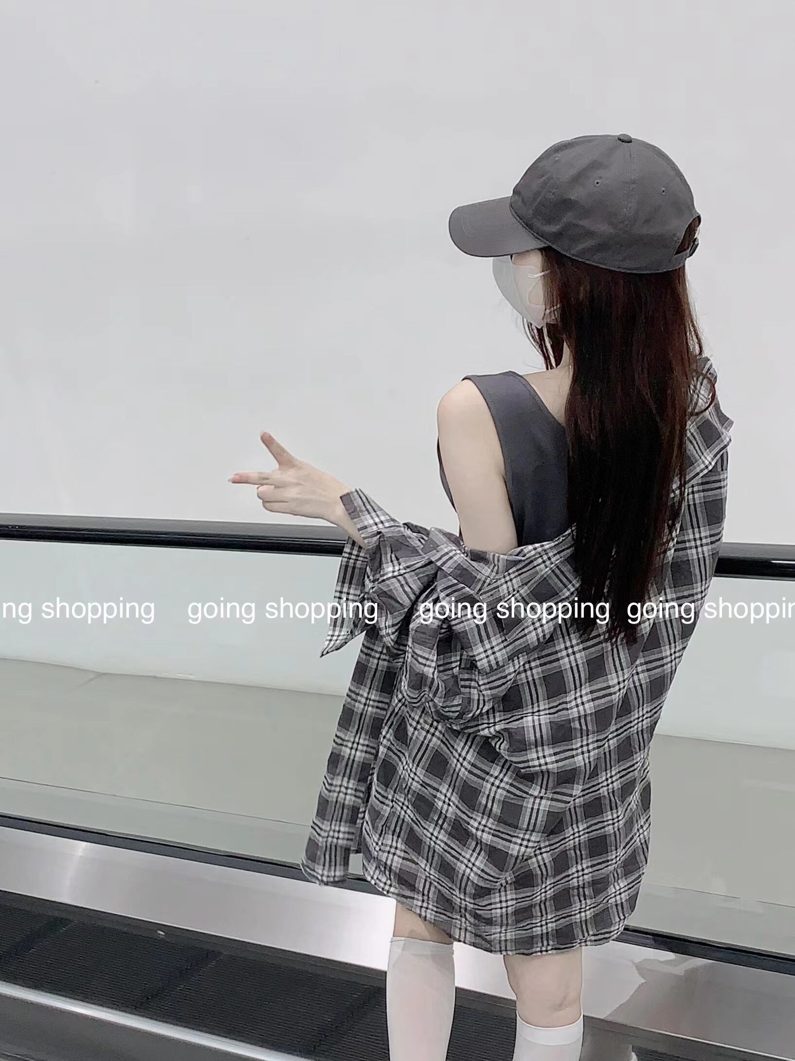 Retro casual chic plaid long-sleeved sunscreen shirt women's summer 2022 new design versatile loose top ロング レトロ カジュアル サマー 夏物 0921967851365907