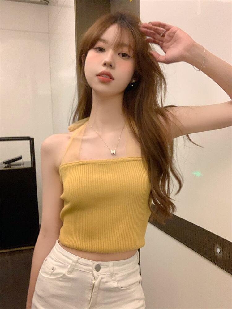 Pure desire halter camisole women's summer 2022 new design slim sexy short tube top top ショート サマー 夏物 スリム 0921977502248129