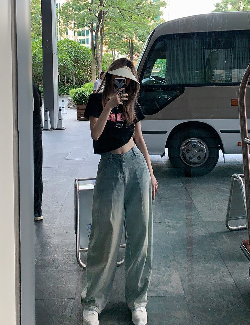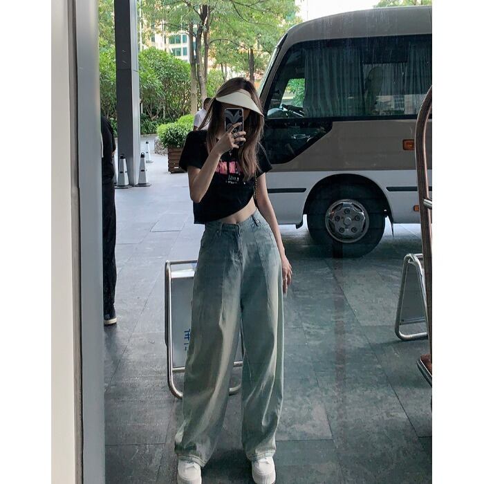 Hot chic gradient washed high-waisted jeans women's summer 2022 new design loose and thin wide-leg pants サマー 夏物 0921981714814720