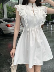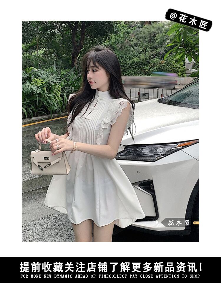 Chinese style disc button lace flying sleeve white dress women's summer 2022 new temperament waist A-line skirt ins ホワイト レース サマー 夏物 スカート Aライン 0921966144477309