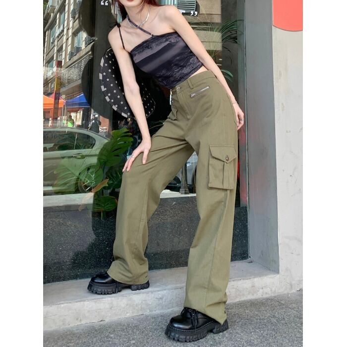 sense chic double zipper overalls casual pants women's summer 2022 new version loose high waist wide leg pants tide ハイウェスト カジュアル サマー 夏物 ワイドレッグ ワイドパンツ 0921959423946275