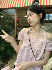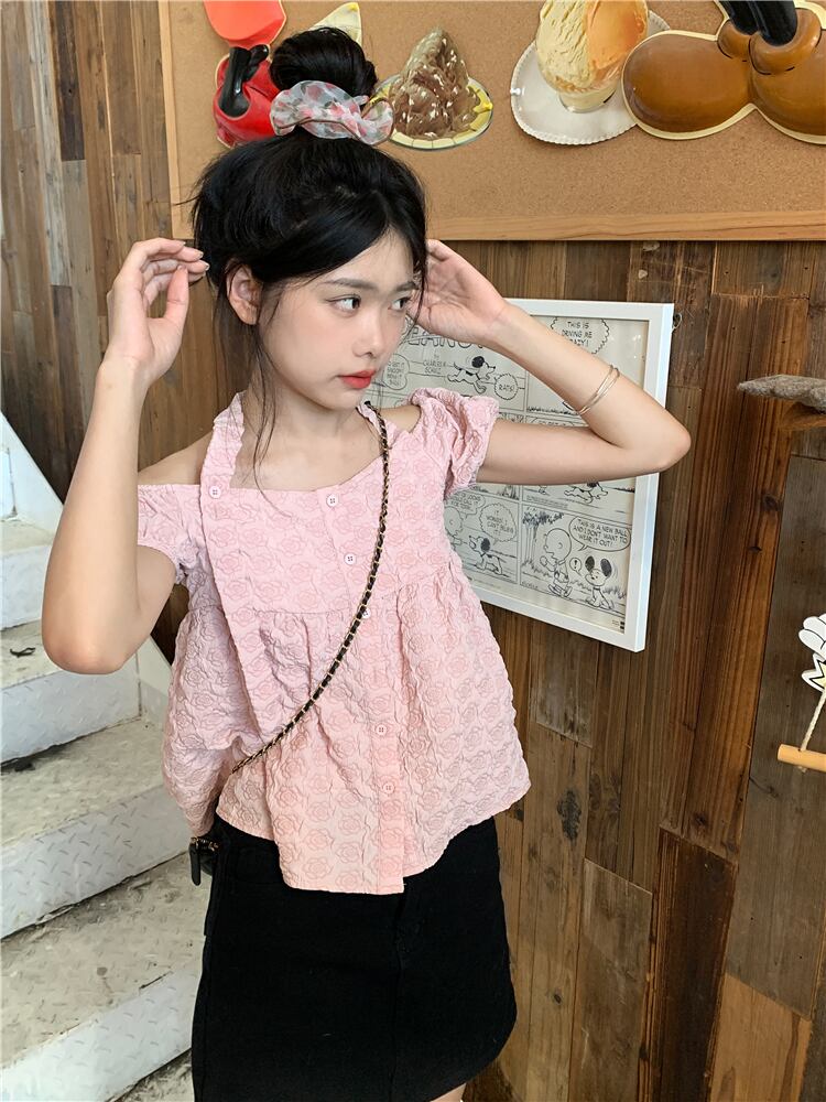 gentle pink rose jacquard short-sleeved shirt women's summer 2022 new sweet thin shirt trend ピンク 大人ガーリー スウィート キュート カジュアル サマー 夏物 0921966386412300