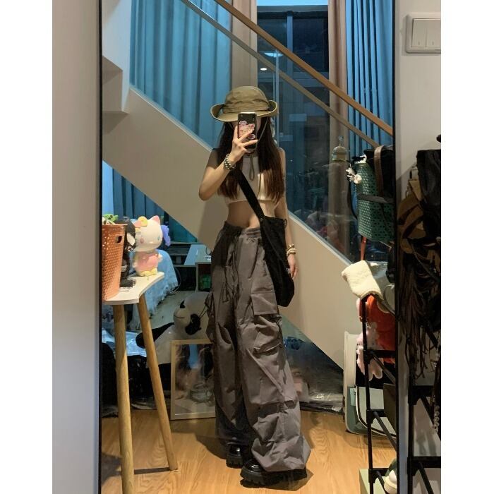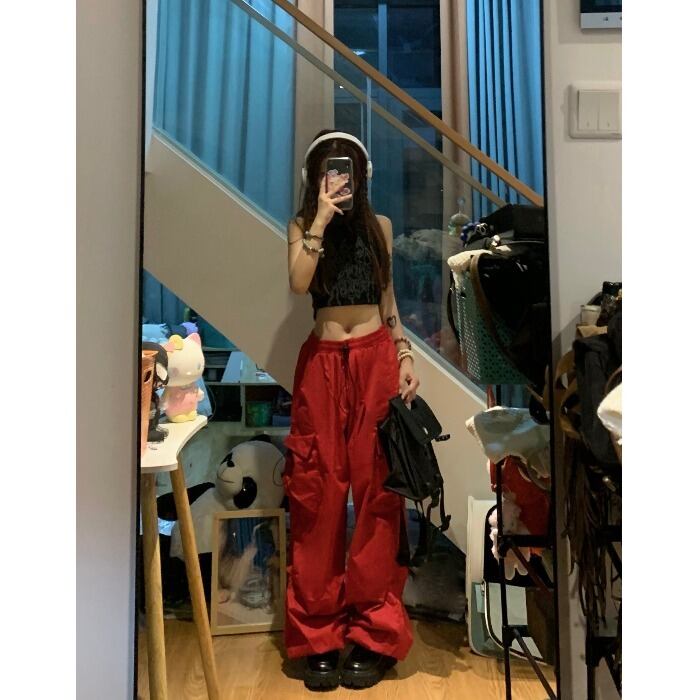 ハイストリート ツーリング ストレート カジュアル パンツ レディース 夏 小さめ トール ウエスト 細め ゆったり ワイドパンツ トラウザー イン 潮 サマー 夏物 0921937122308927