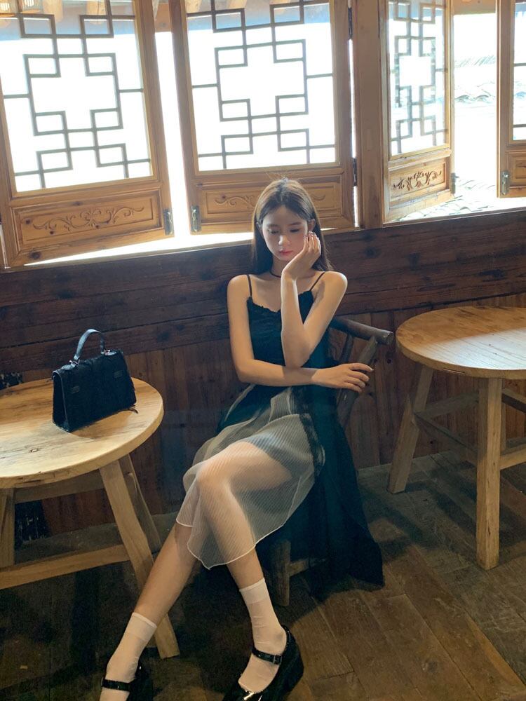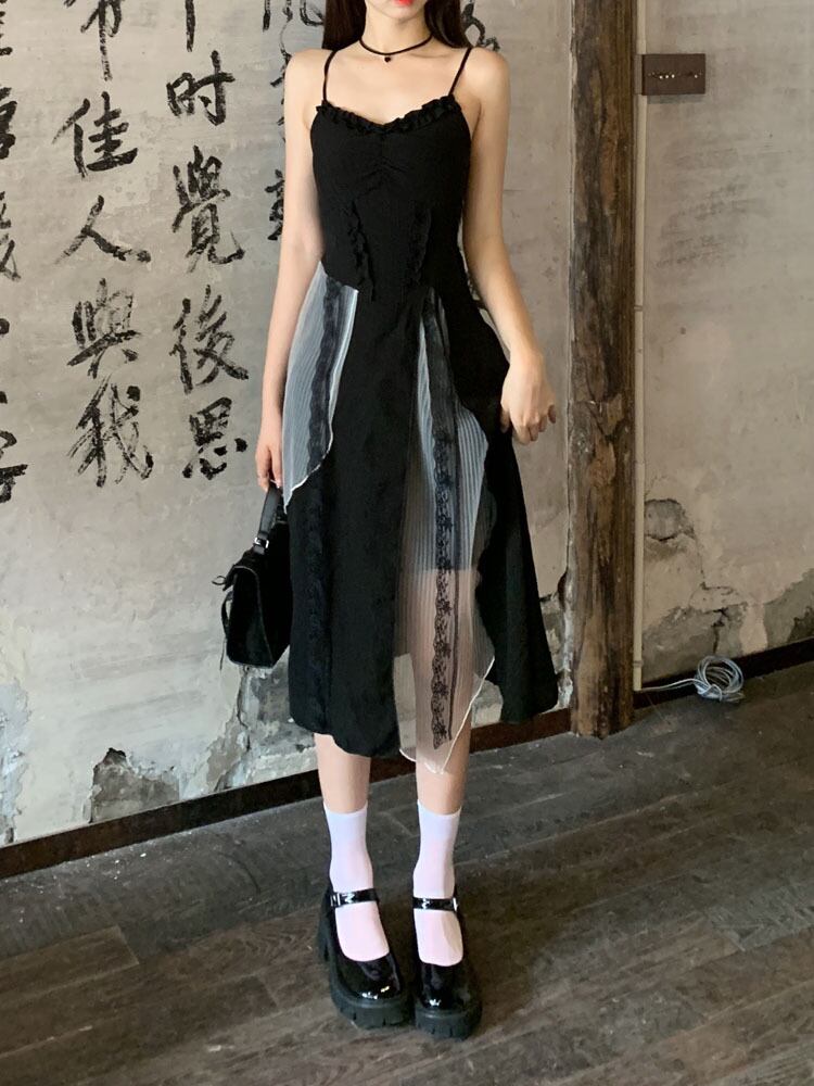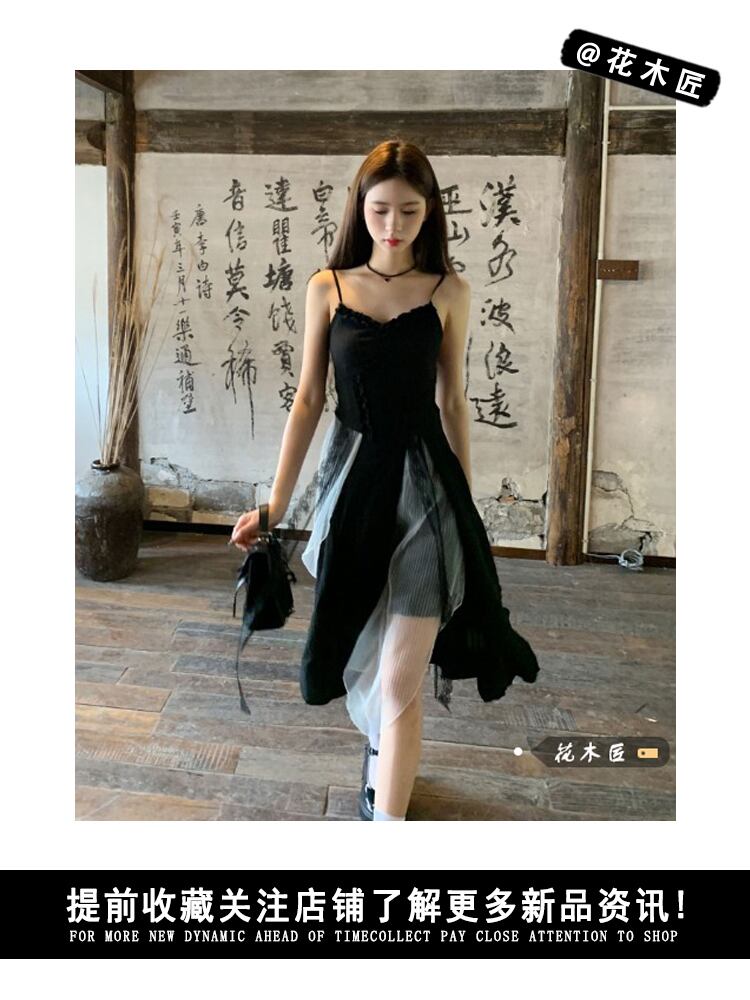 -quality chic mesh stitching suspender dress women's summer 2022 new temperament waist irregular skirt サマー 夏物 メッシュ スカート ステッチ 0921944441400107