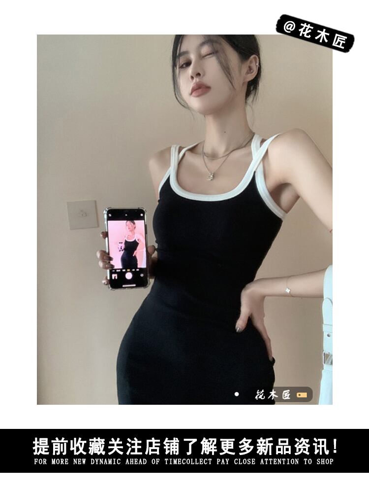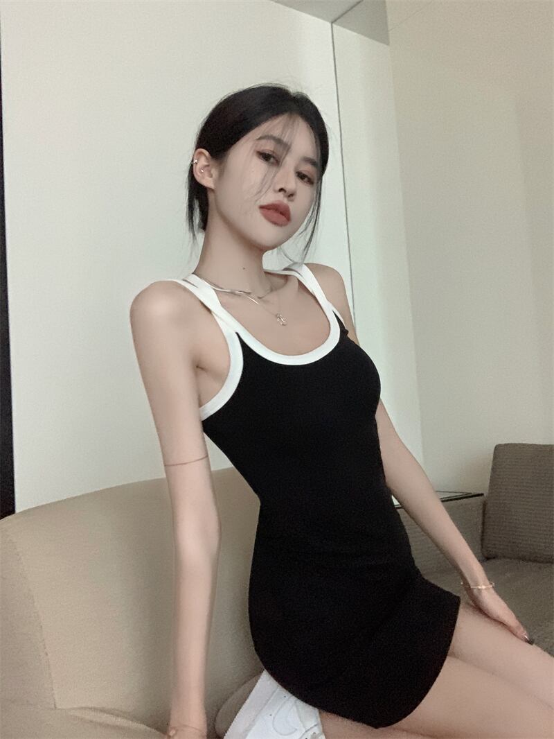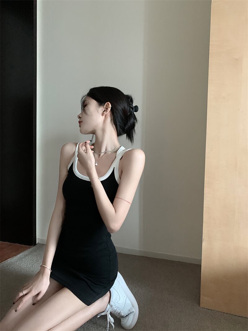 American slim fit and slim contrast color sleeveless suspender dress women's summer 2022 new versatile bag hip skirt サマー 夏物 ノースリーブ スカート スリム 0921987601265451