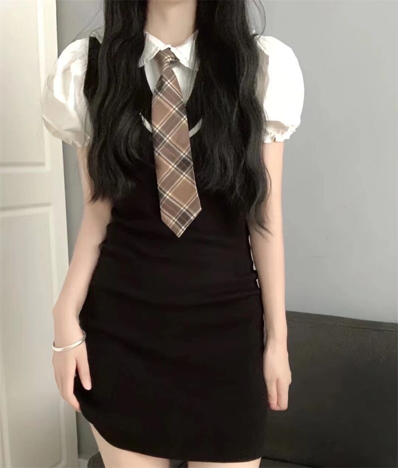 色:ホワイトshirt+tie,ワンpieceドレス