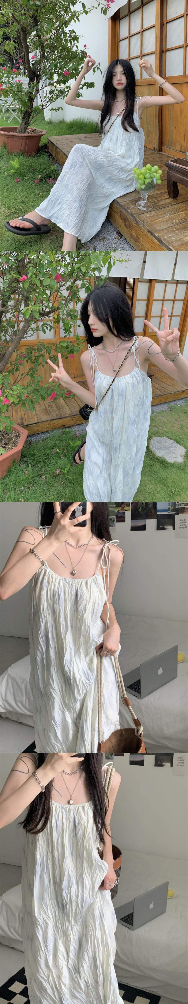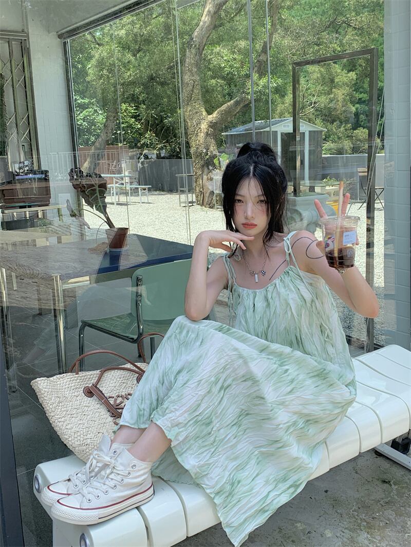 Holiday style chic bandage pleated suspender dress female summer 2022 new loose mid-length skirt プリーツ サマー 夏物 スカート 0921914313888347