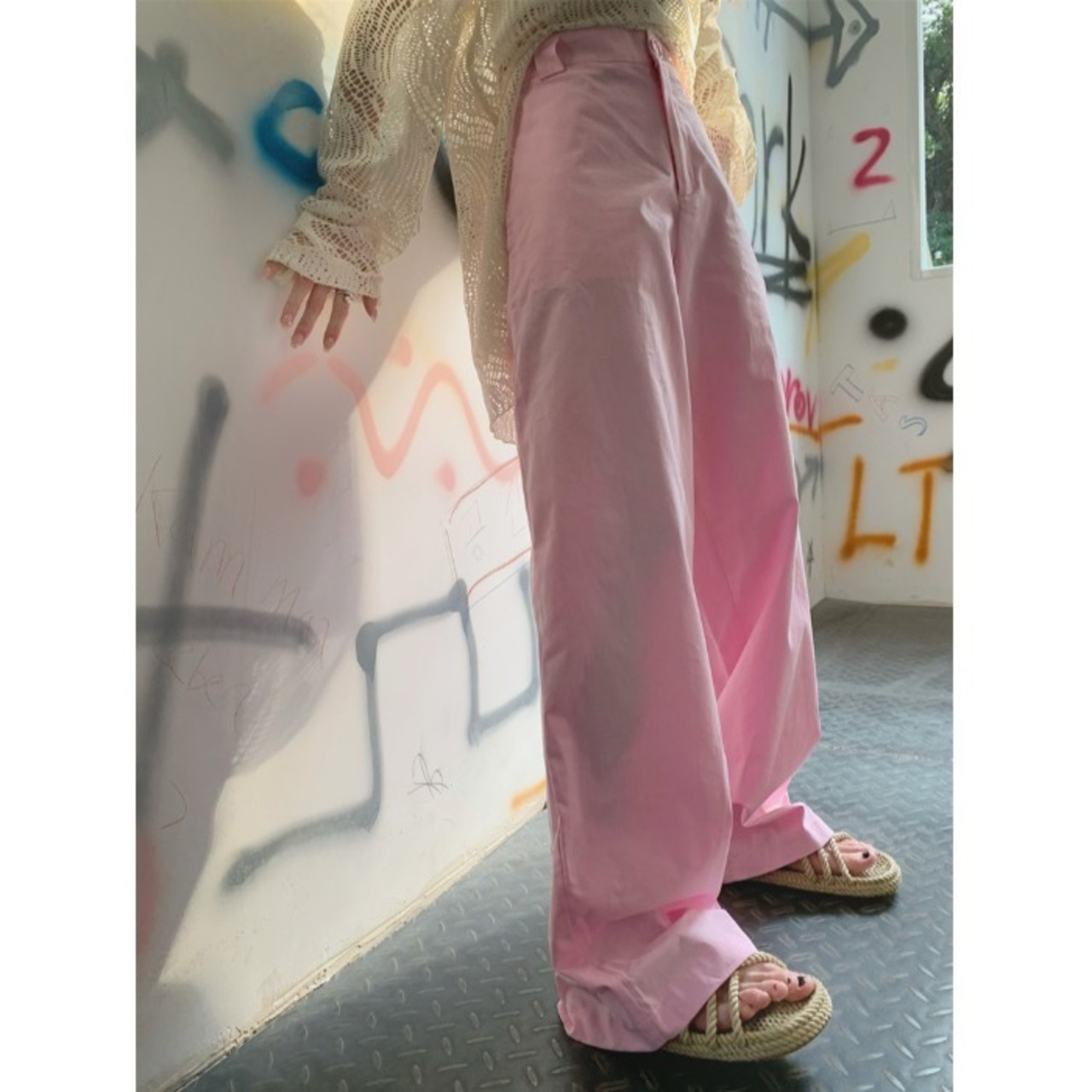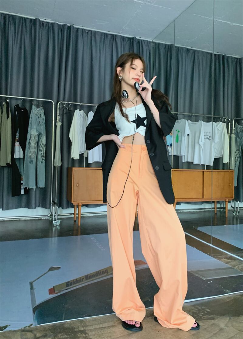 version design thin pink high waist casual pants women's summer 2022 new all-match chic loose wide-leg pants ハイウェスト ピンク カジュアル サマー 夏物 09219744956987
