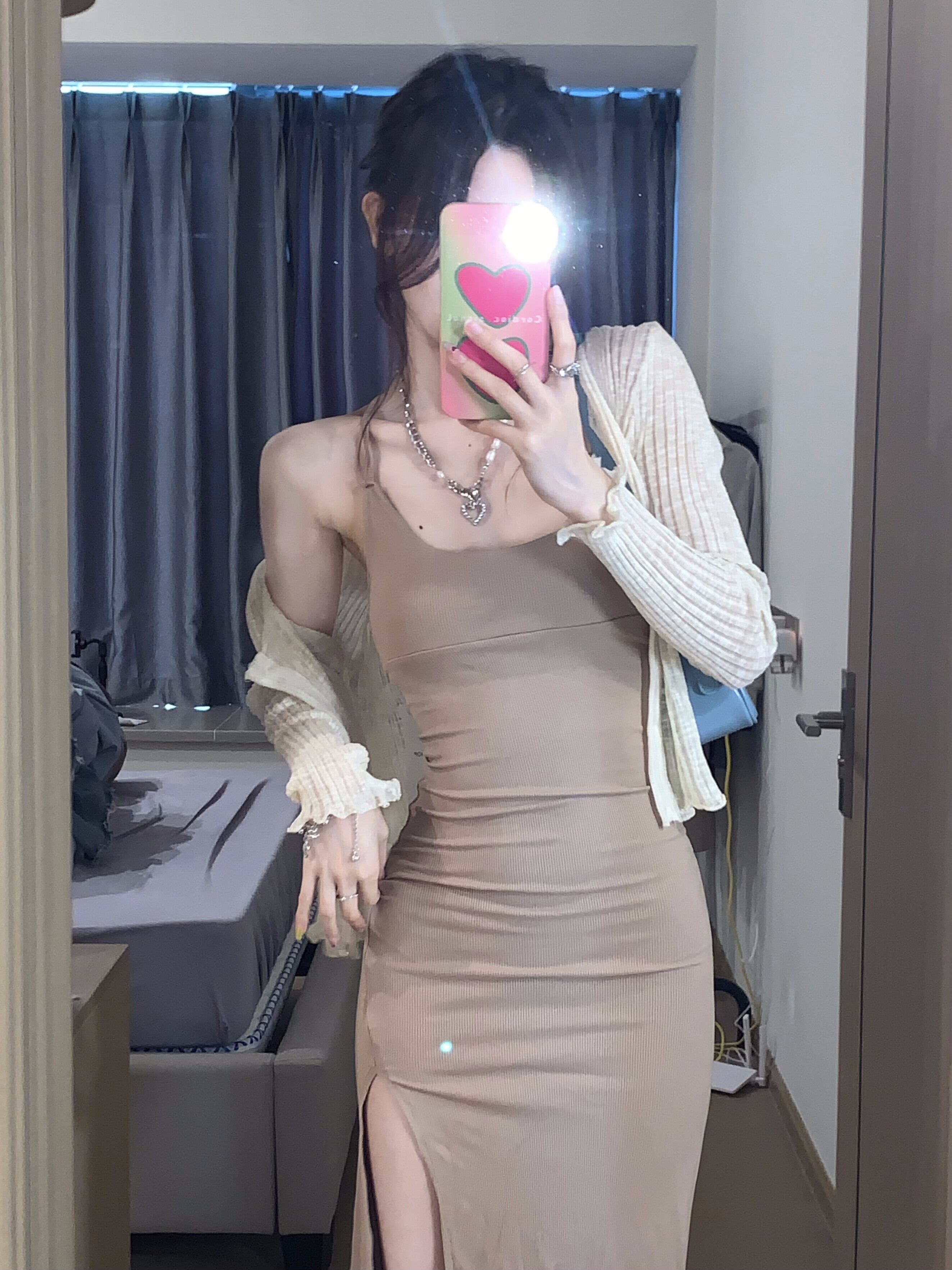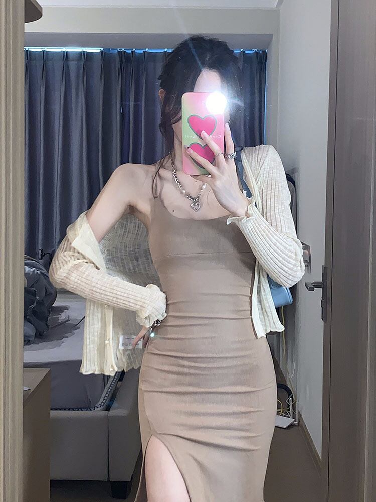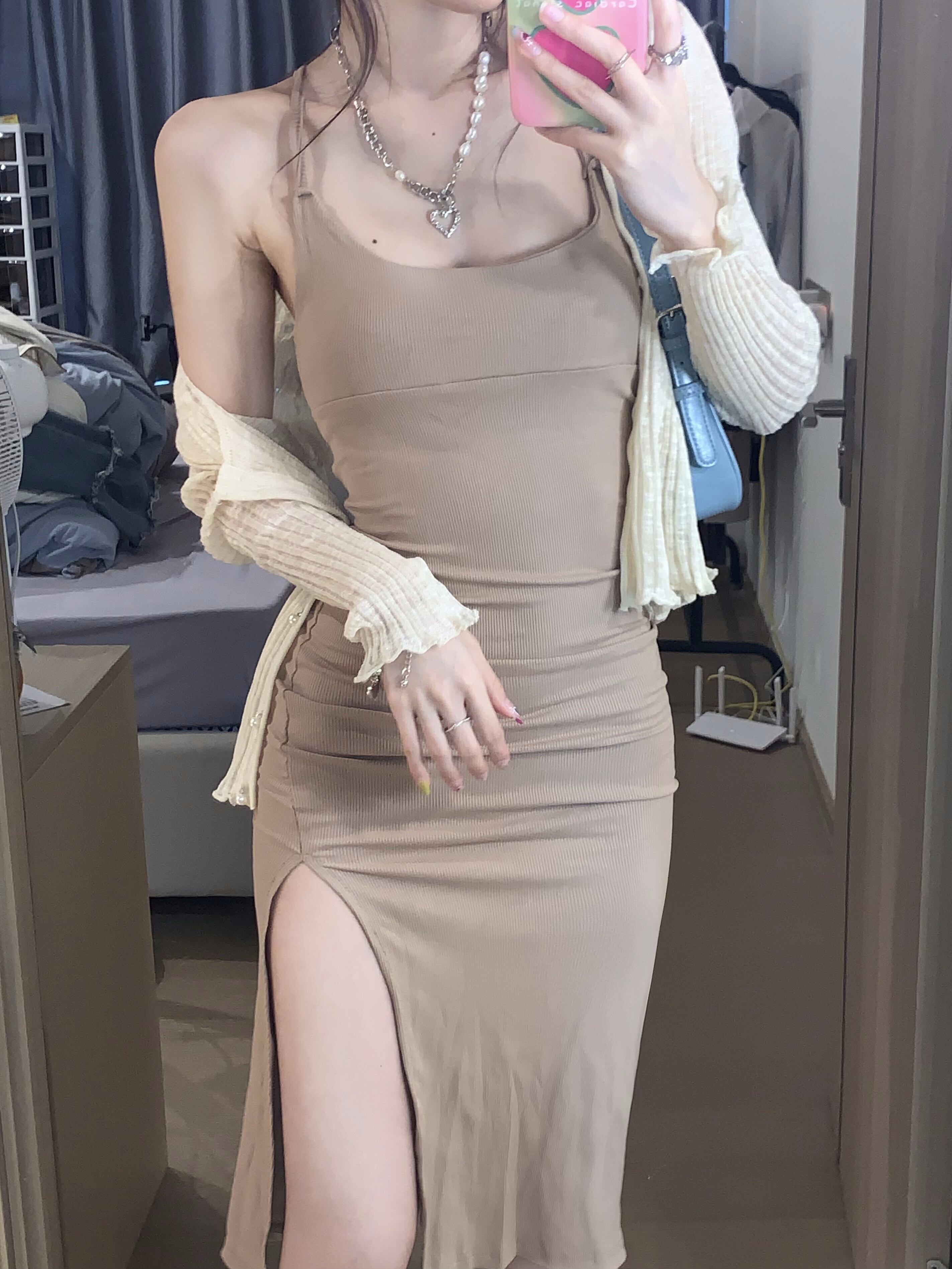 Sexy solid color suspender dress female summer 2022 new waist mid-length split bag hip skirt trendy サマー 夏物 スカート ソリッドカラー 0921916123928004