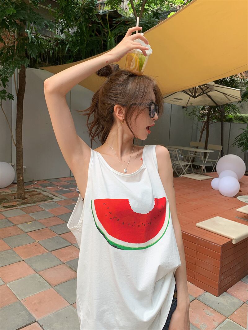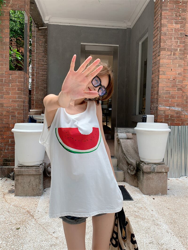 sense of chic watermelon print sleeveless T-shirt women's summer 2022 new version of the loose mid-length shirt tide サマー 夏物 ノースリーブ Tシャツ 0921919851558825
