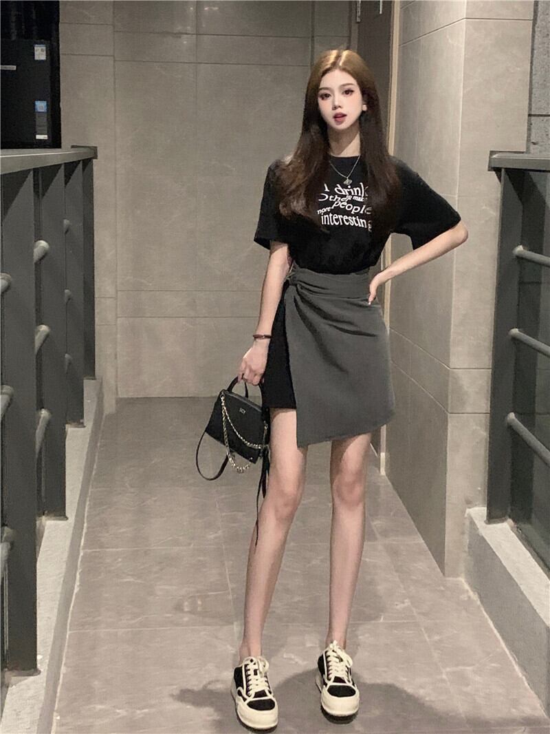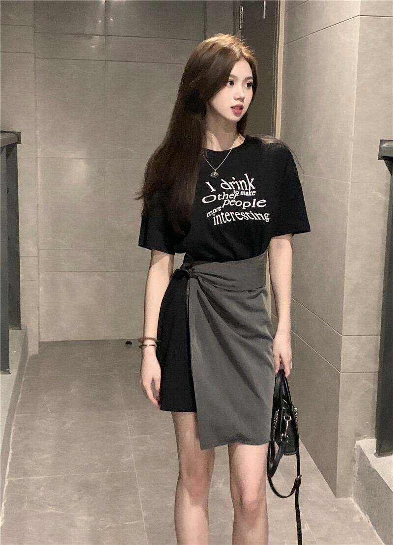 Splicing fake two-piece short-sleeved t-shirt dress women's summer 2022 new design letter waist irregular skirt サマー 夏物 スカート Tシャツ 0921913017011440
