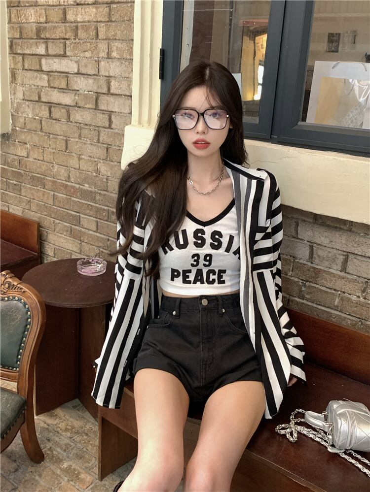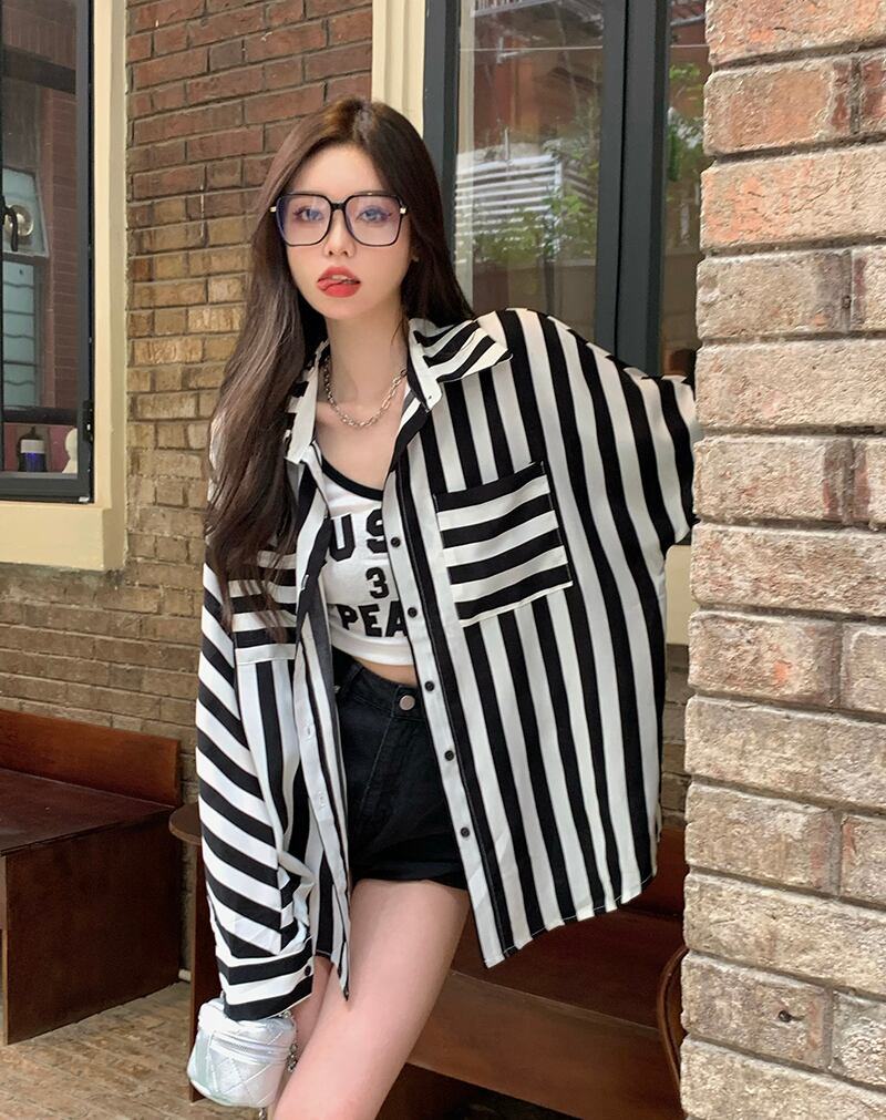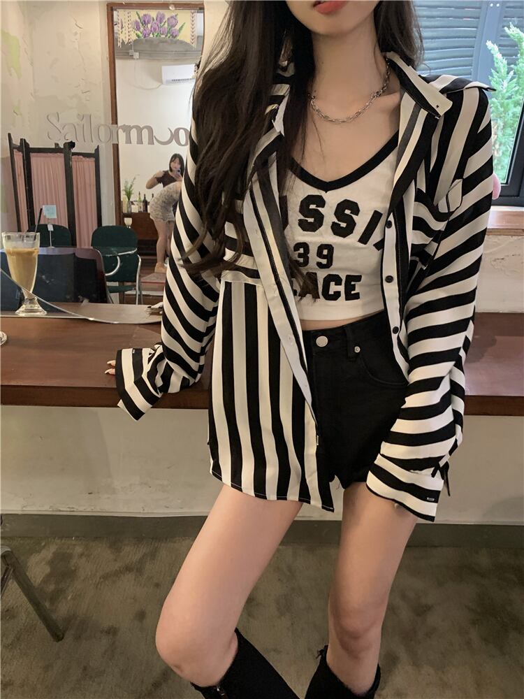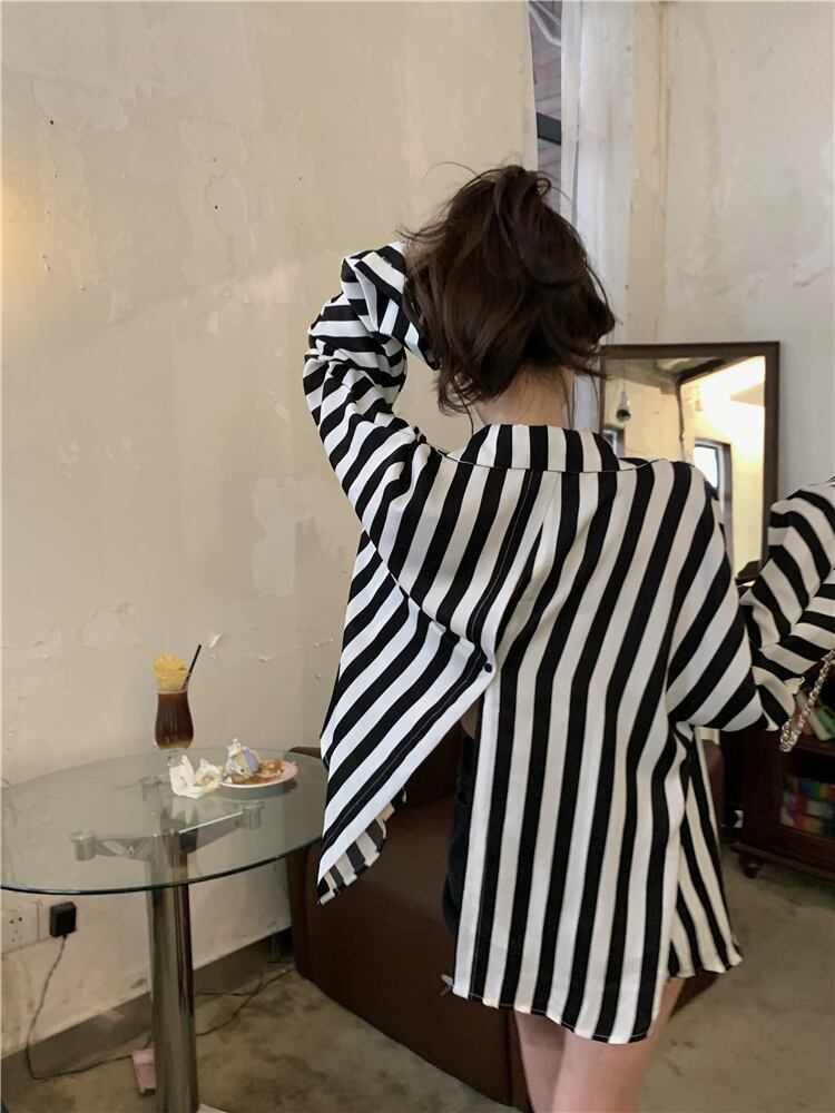 sense rear slit striped sunscreen shirt women's summer 2022 new loose mid-length chic long-sleeved top ロング サマー 夏物 ストライプ 0921970306040727