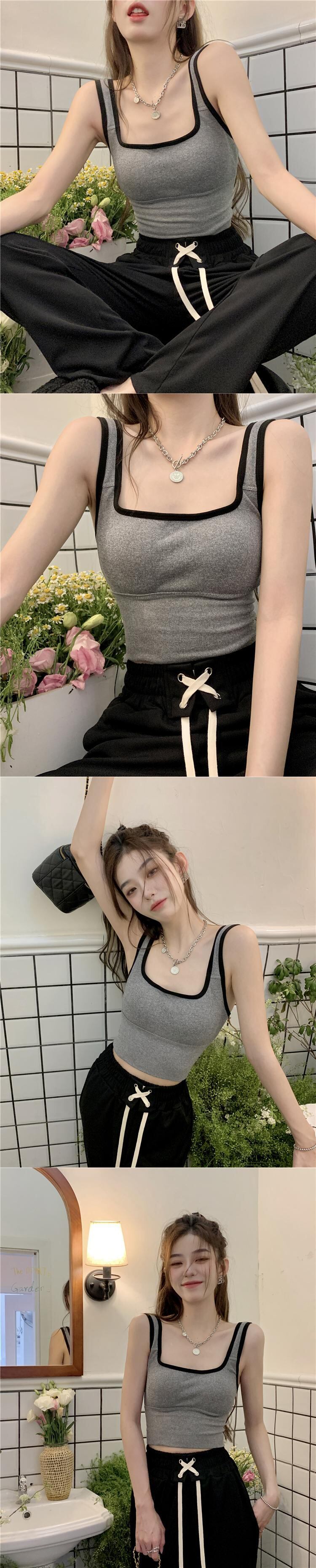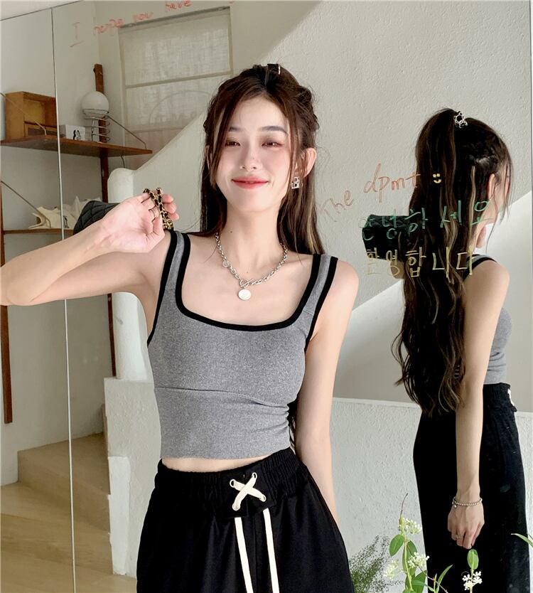 version ins contrast color camisole women's summer 2022 new style inside and outside wear slim short sleeveless top trendy ショート 半袖 ハーフスリーブ サマー 夏物 ノースリーブ スリム 0921967446189140
