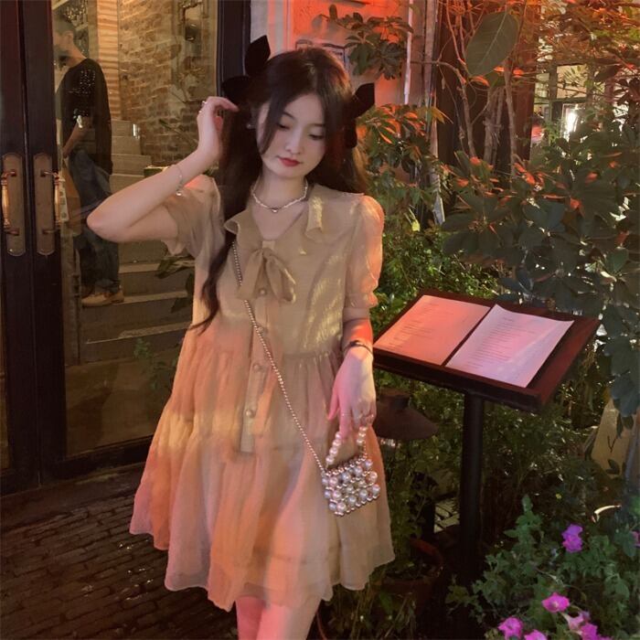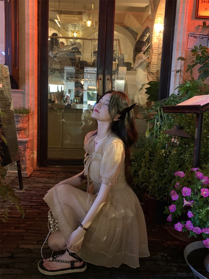 French gentle wind lace V-neck dress female summer 2022 new sweet waist A-line skirt ins tide レース 大人ガーリー スウィート キュート カジュアル サマー 夏物 スカート Vネック Aライン 0921942427123178