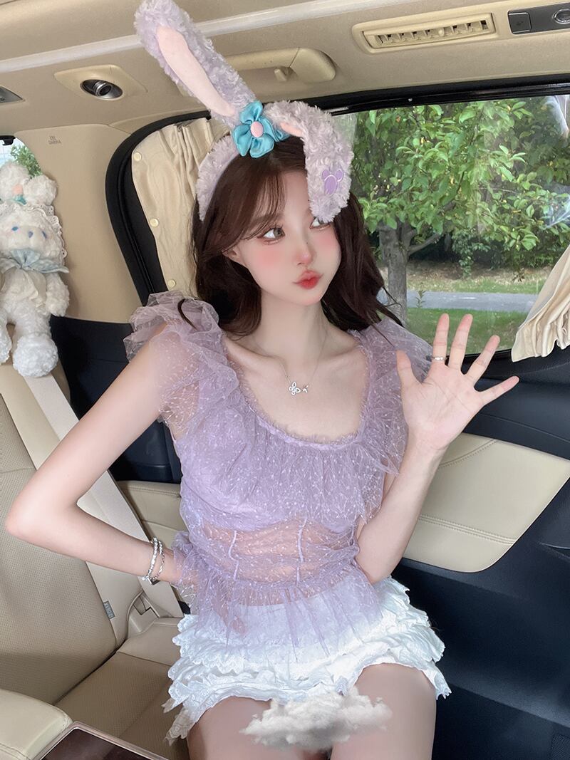 Pure desire wind sexy mesh lace vest women's summer 2022 new scheming micro-transparent short sleeveless outer top ショート レース 半袖 ハーフスリーブ サマー 夏物 メッシュ ノースリーブ 0921989046408397
