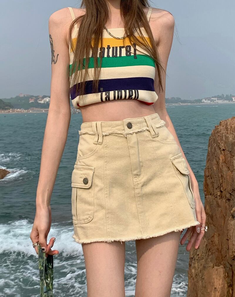 sense pocket tooling denim skirt women's summer 2022 new small high waist raw edge A-line skirt ハイウェスト サマー 夏物 スカート Aライン 0921917170650219
