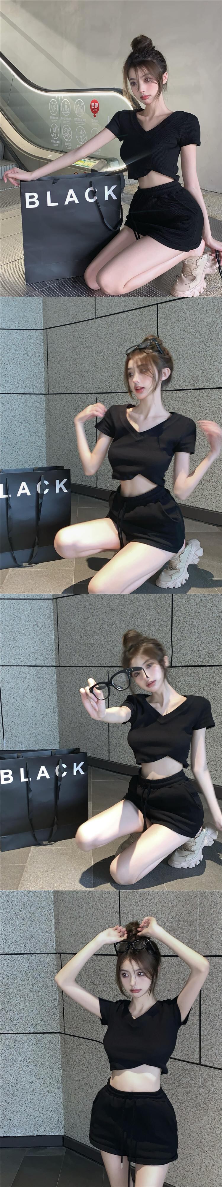 Waffle fashion suit female summer 2022 new small short t-shirt casual shorts Western style two-piece suit ショート カジュアル サマー 夏物 ショーツ ブルマー Tシャツ 0921960787128030