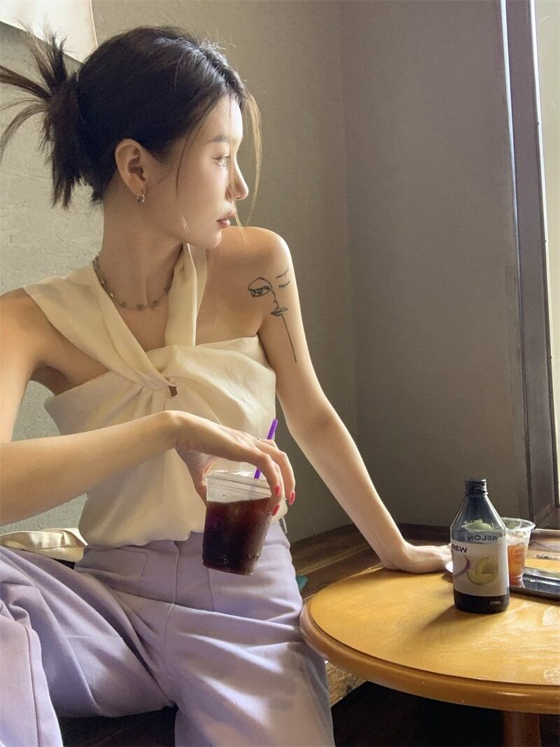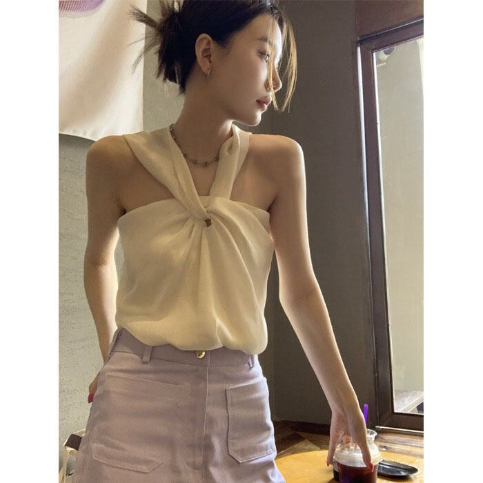-quality pleated camisole women's summer wear 2022 new style inside to show thin and chic short top ショート プリーツ サマー 夏物 0921961328048796