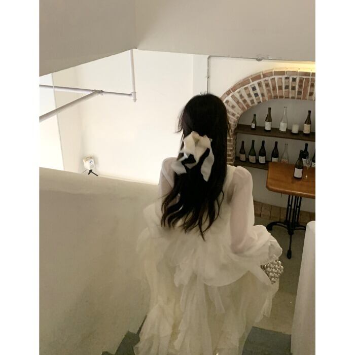 French fairy white long-sleeved dress women's summer 2022 new temperament ruffled slim mid-length skirt ロング ホワイト サマー 夏物 スカート スリム 0921940558659281