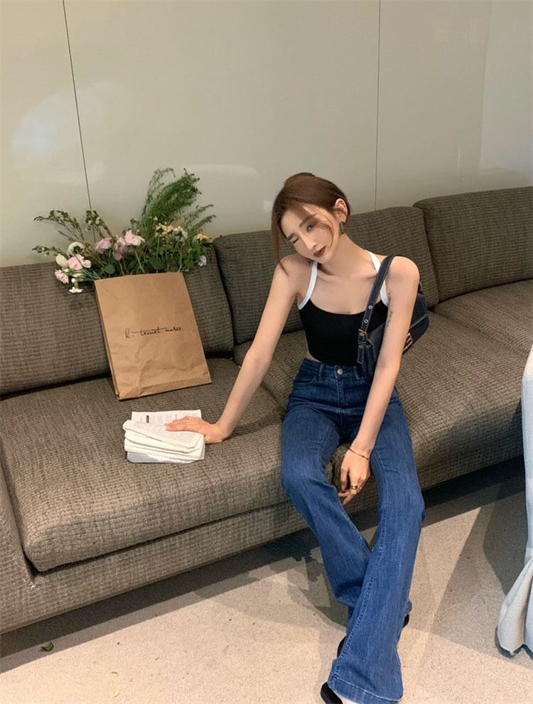 Blue jeans women's summer 2022 new design sense of slim micro flared pants high waist thin mopping pants trendy ハイウェスト レッド ブルー サマー 夏物 スリム 0921937023623520