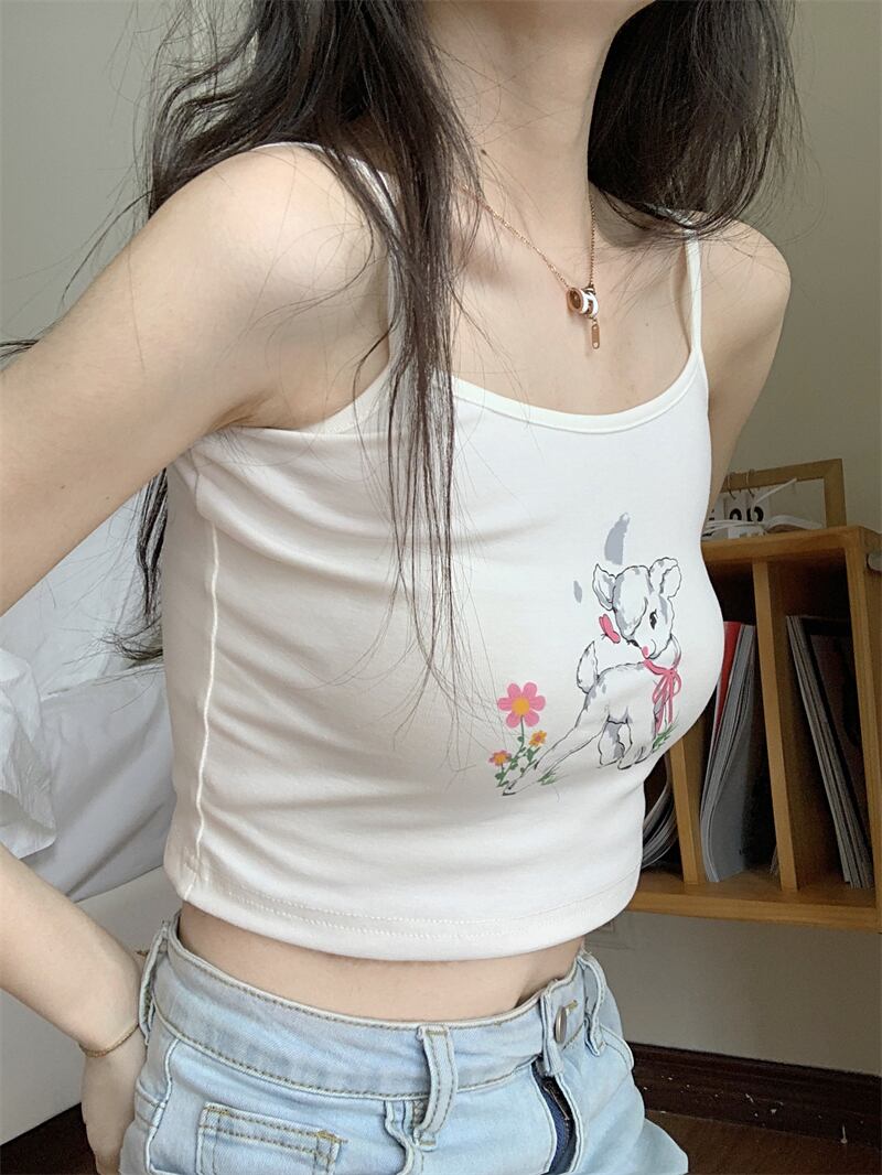 pure desire print camisole women's summer 2022 new small temperament all-match short top ショート サマー 夏物 ピュア 0921932268895461
